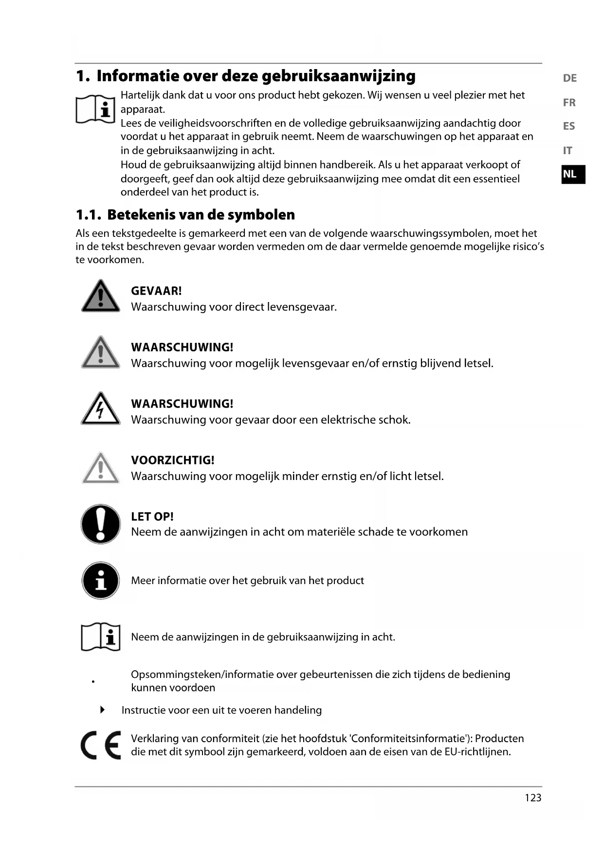 1. Informatie over deze gebruiksaanwijzing ...................................................................... 123