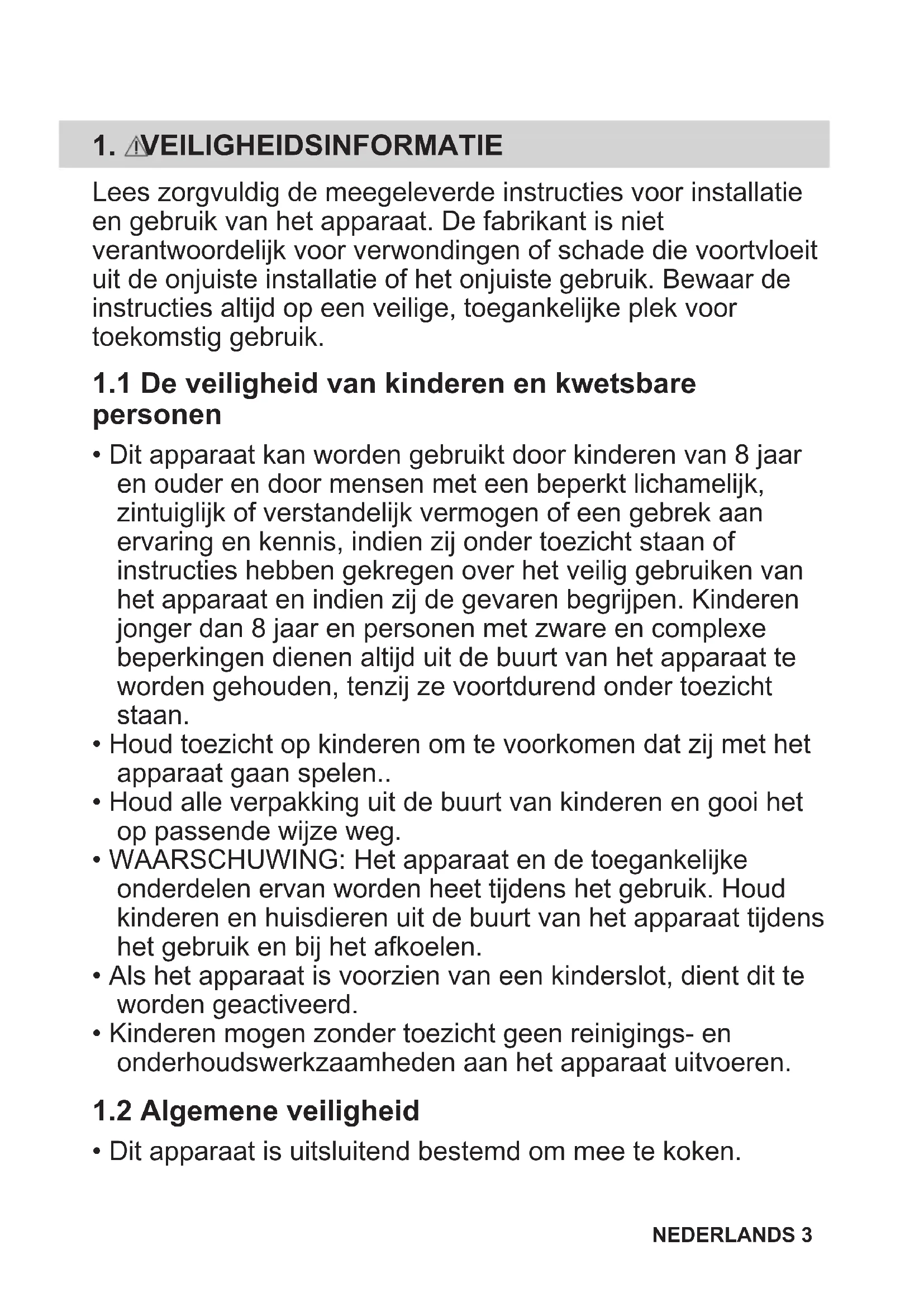 - Dit apparaat is uitsluitend bestemd om mee te koken. NEDERLANDS 3• Dit apparaat is bedoeld voor binnenshuis huishoudelijk gebruik.