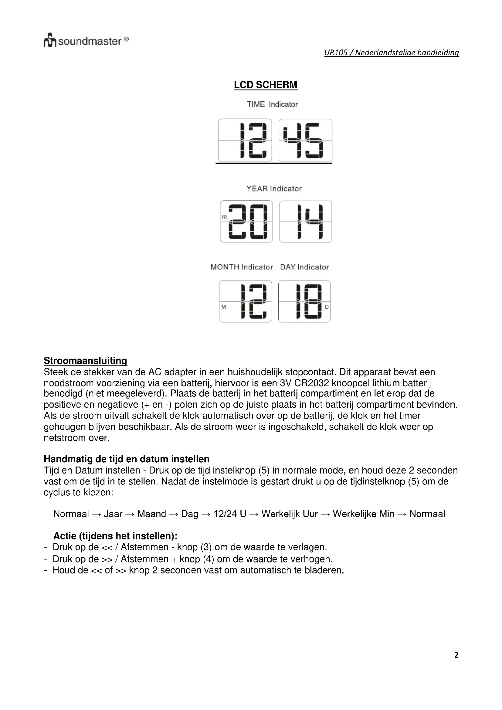 GEBRUIKSAANWIJZING UR105HBR Soundmaster