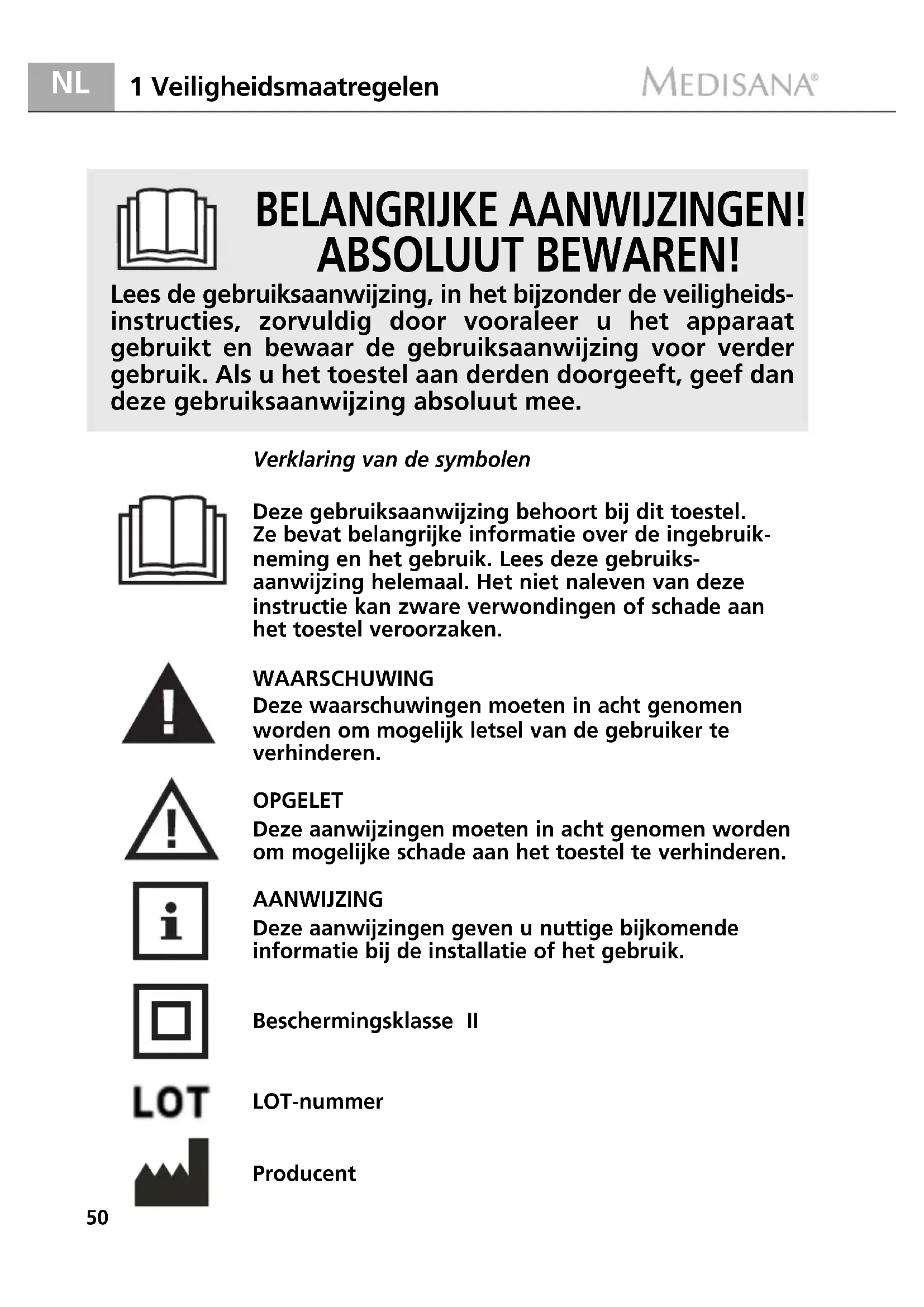 Lees de gebruiksaanwijzing, in het bijzonder de veiligheids-instructies, zorvuldig door vooraleer u het apparaat gebruikt en bewaar de gebruiksaanwijzing voor verder gebruik. Als u het toestel aan derden doorgeeft, geef dan deze gebruiksaanwijzing absoluut mee.