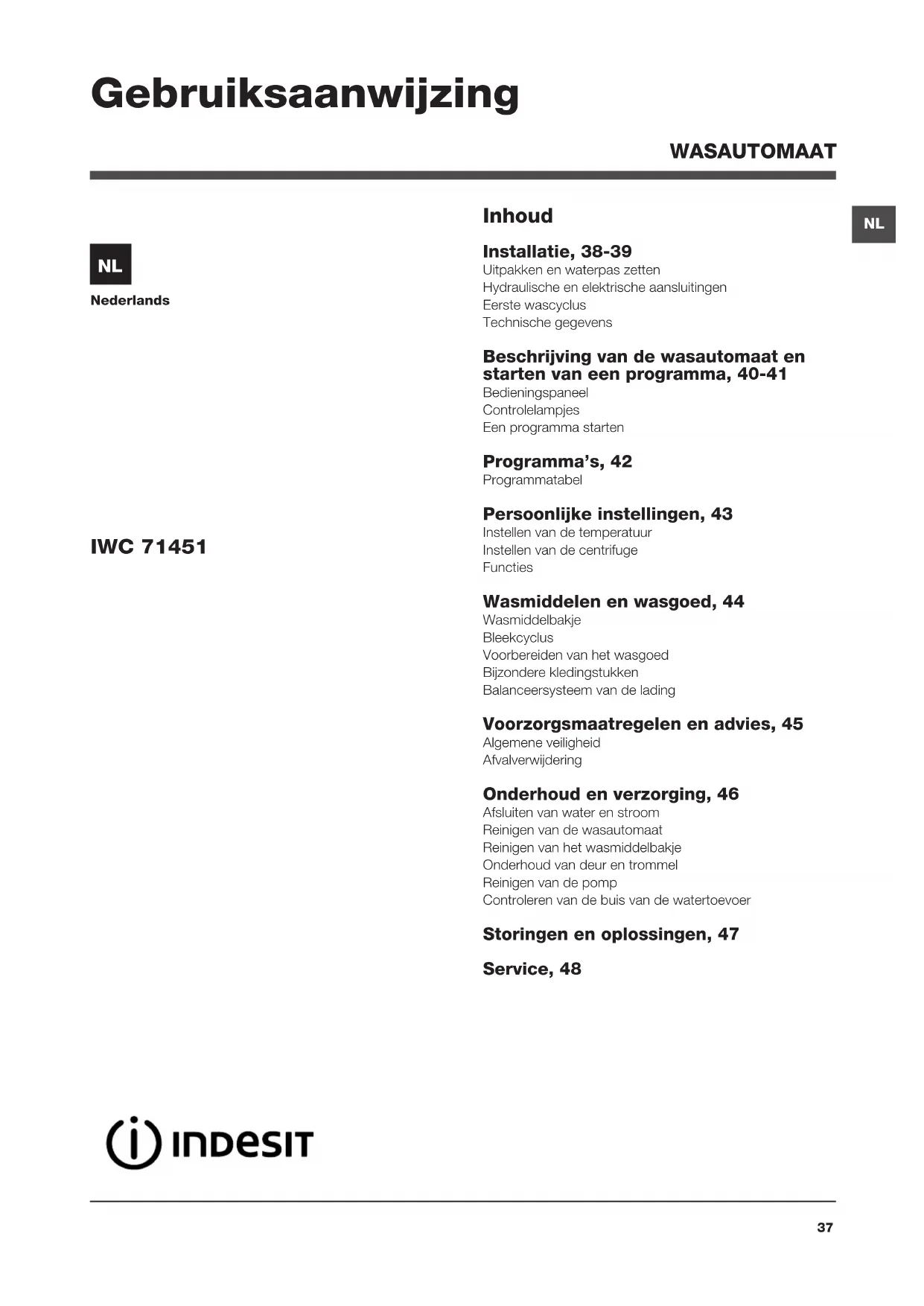 IWC 71451 Gebruiksaanwijzing WASAUTOMAAT38