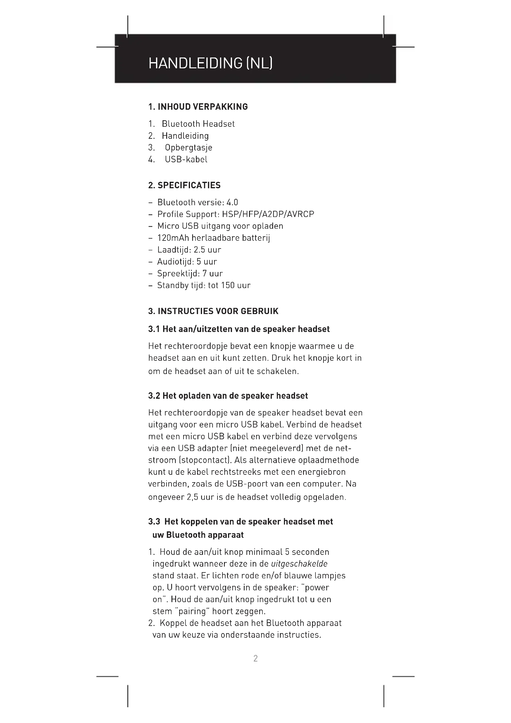 3.3 Het koppelen van de speaker headset met