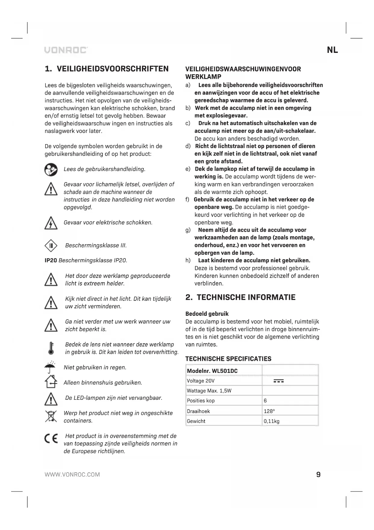 GEBRUIKSAANWIJZING WL501DC Vonroc