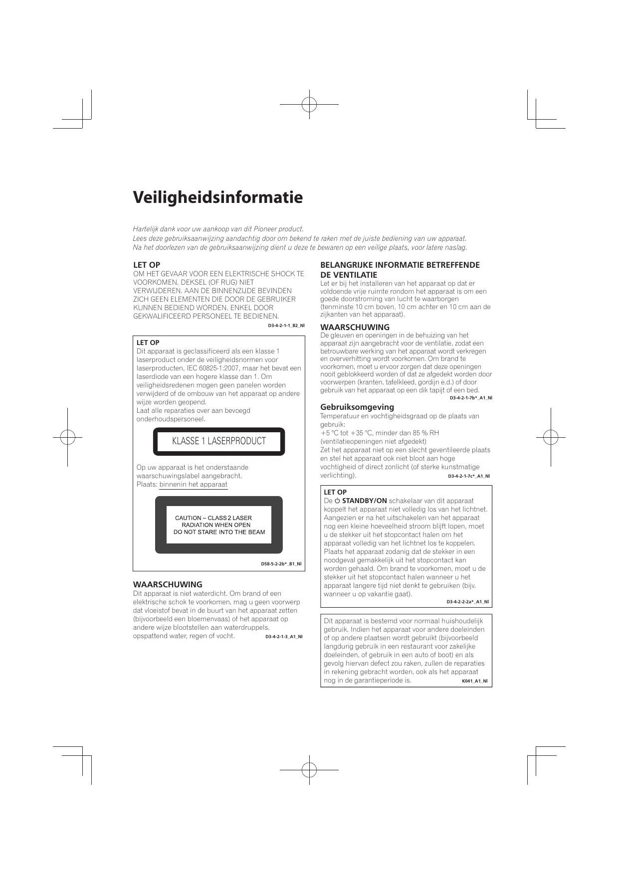 Comme le cordon d’alimentation fait office de dispositif de déconnexion du secteur, il devra être débranché au niveau de la prise secteur pour que l’appareil soit complètement hors tension. Par conséquent, veillez à installer l’appareil de telle manière que son cordon d’alimentation puisse être facilement débranché de la prise secteur en cas d’accident. Pour éviter tout risque d’incendie, le cordon d’alimentation sera débranché au niveau de la prise secteur si vous prévoyez une période prolongée de non utilisation (par exemple avant un départ en vacances). D3-4-2-2-2a*_A1_Fr