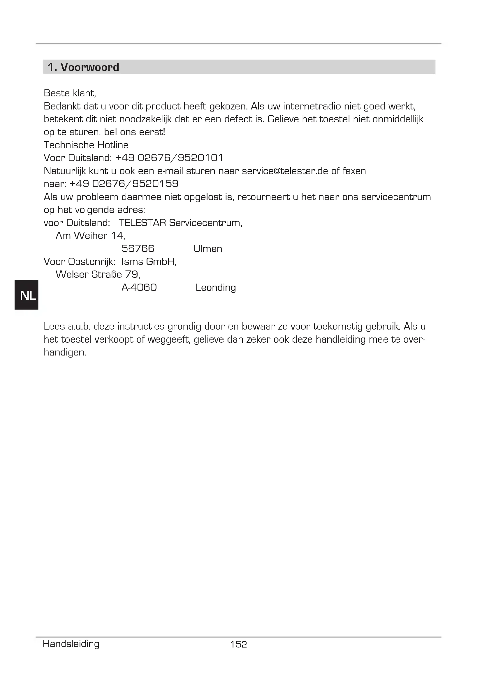 Bedankt dat u voor dit product heeft gekozen. Als uw internetradio Niet goed werkt, betekent dit Nietoodzakelijk dat er een defect is. Givelve het toestel Niet onmiddelijk op te sturen, bel ons eerst!