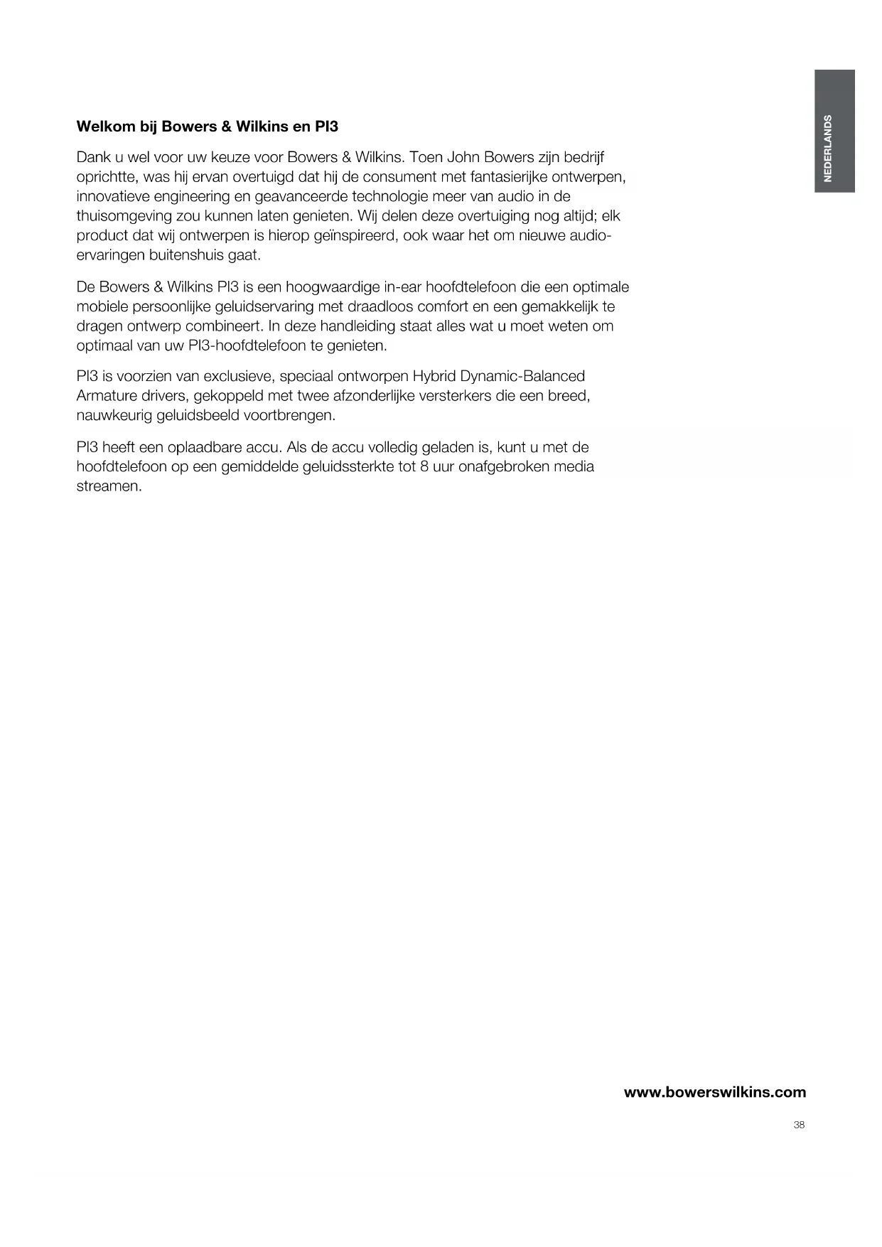 GEBRUIKSAANWIJZING PI3 BOWERS & WILKINS