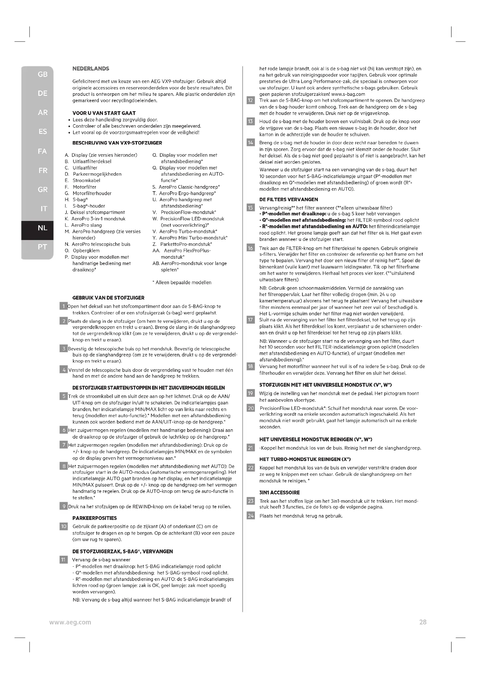 Dit instructrieboeck, de spezifieke productkaart van de stofzuiger en het energielabel konnen worden gedownLOAD op once website, www.aeg.nl / www.aeg.be.