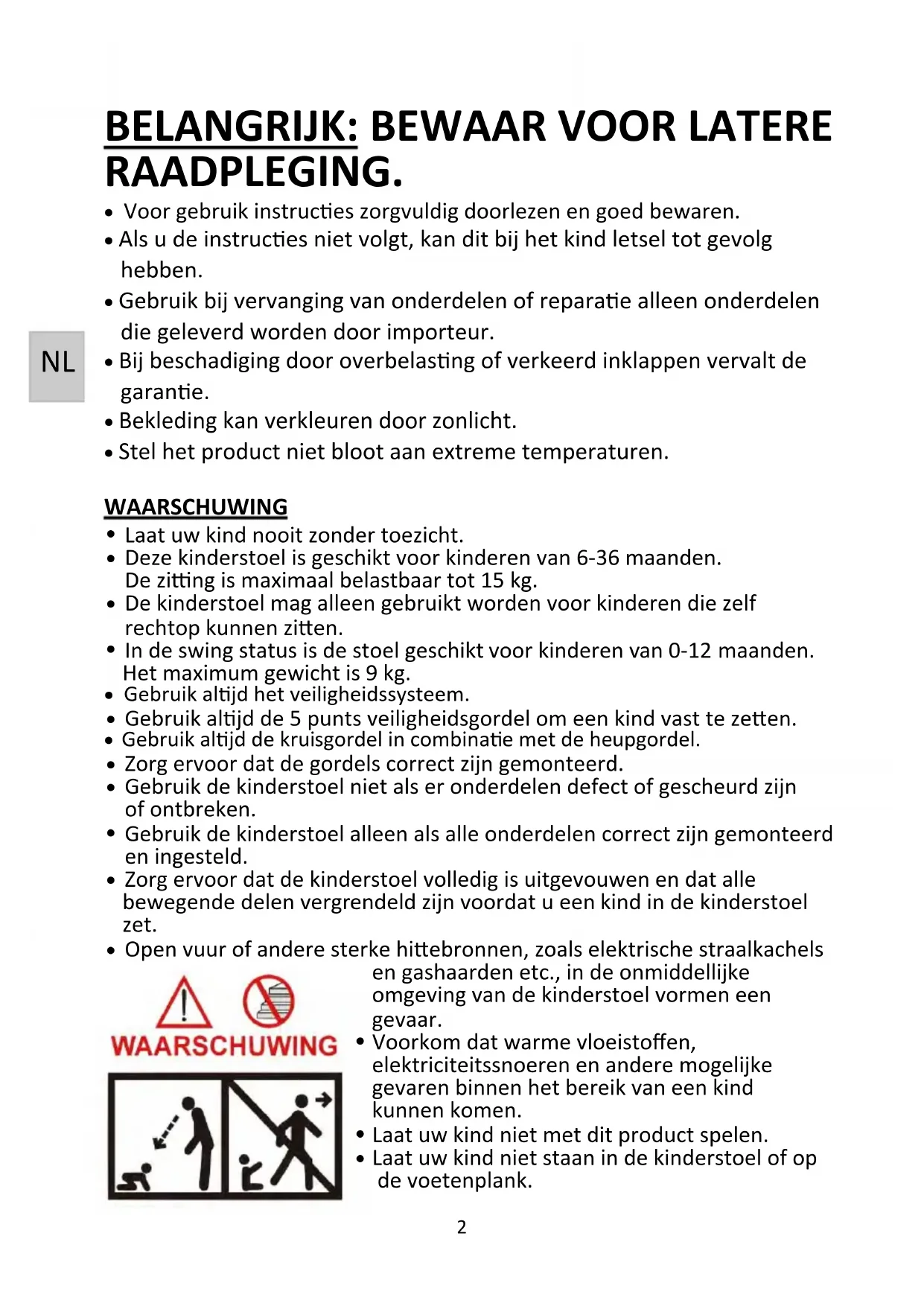 - Dit product is nicht bedoeld als verranging van een kinderbedje. Indien uw kind要去 slapen, dient het kind in een waarvoort geschikt kinderbedje te worden gelegd.