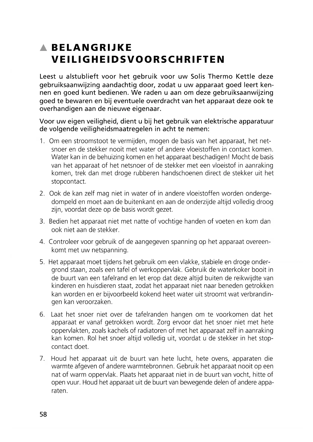 18. Gebruik de Solis waterkoker alleen voor het verwarmen van water. Het is niet