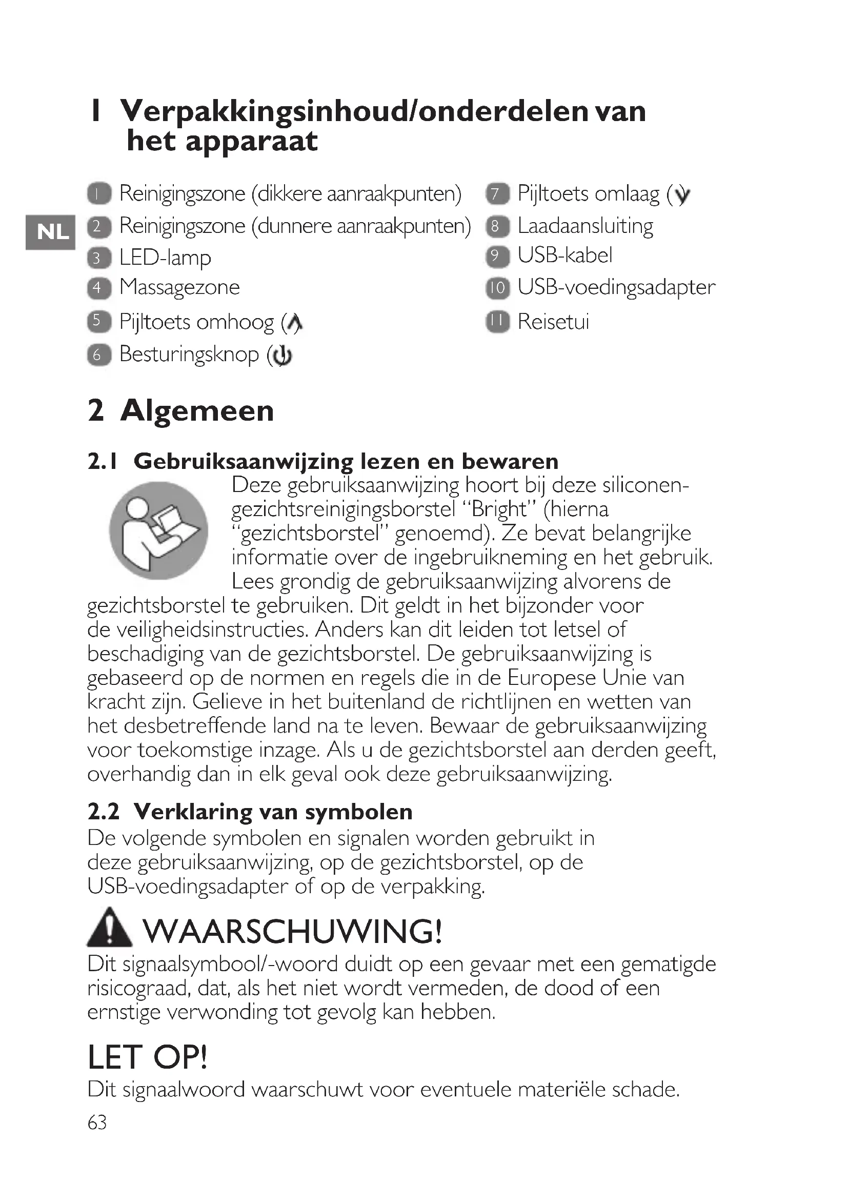 2.1 Gebruiksaanwijzing lezen en bewaren ____ 63