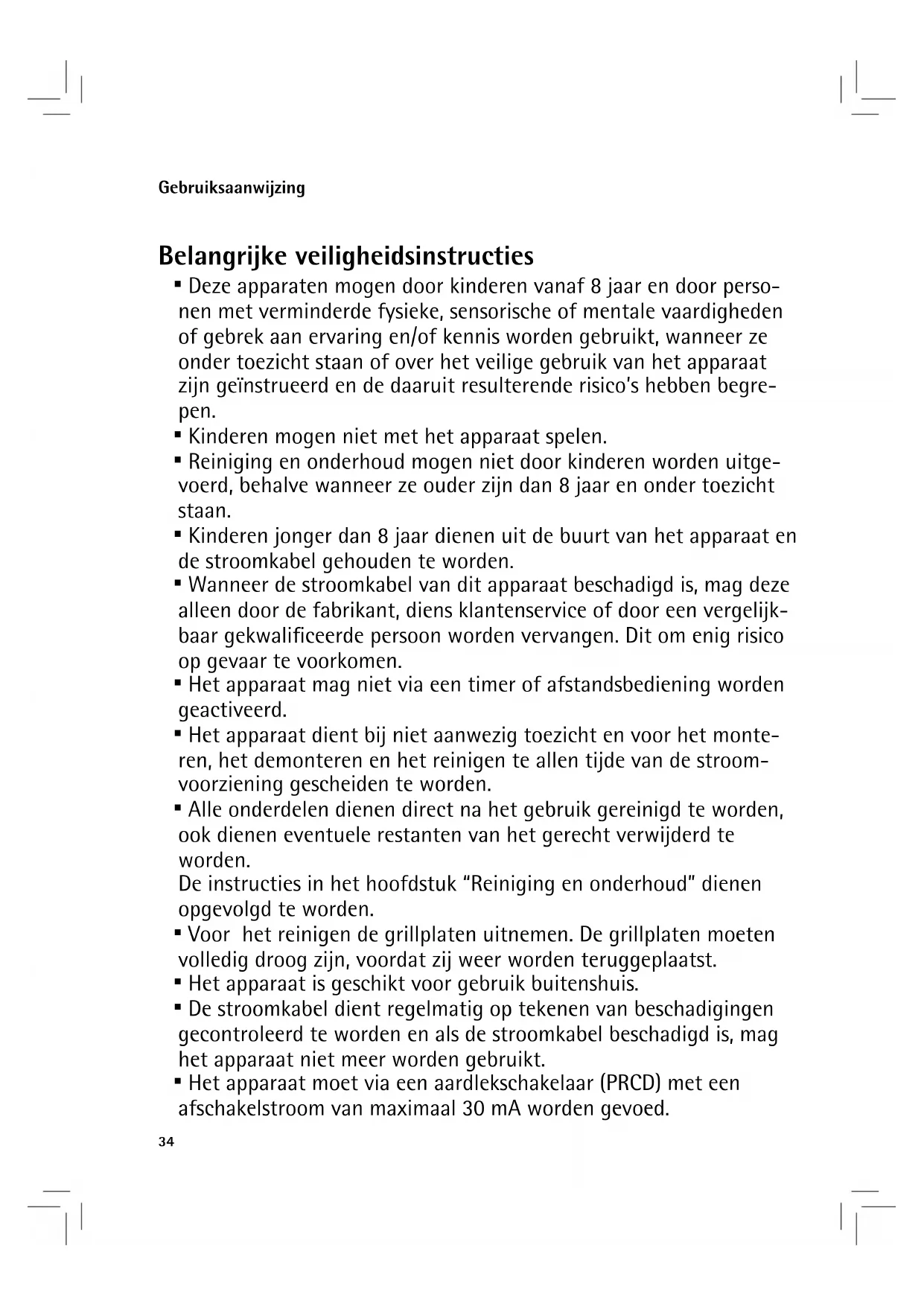 - Het apparaat moet via een aardlekschakelaar (PRCD) met een afschakelstroom van maximaal 30 mA worden gevoed.35