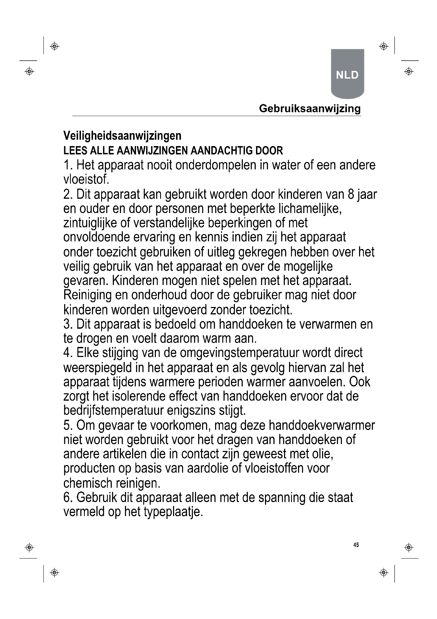3. Dit apparaat is bedoeld om handdoeken te verwarmen en