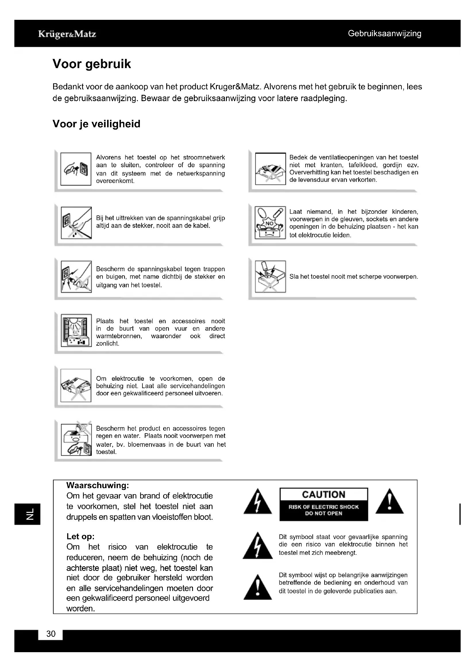 Bedankt voor de aankoop van het product Kruger&Matz. Alvorens met het gebruik te beginnen, lees de gebruiksaanwijzing. Bewaar de gebruiksaanwijzing voor latere raadpleging.