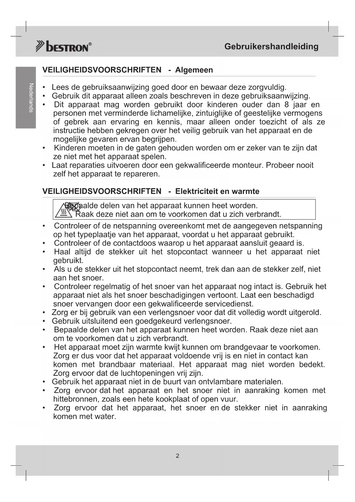 Nederlands VEILIGHEIDSVOORSCHRIFTEN - Algemeen