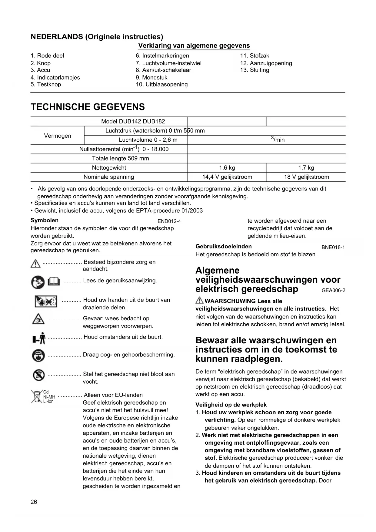 De term "elektrisch gereedschap" in de waarschuwingen verwijst maar elektrisch gereedschap (bekabeld) dat werkt op netstroom en elektrisch gereedschap (draadloos) dat werkt op een accu.