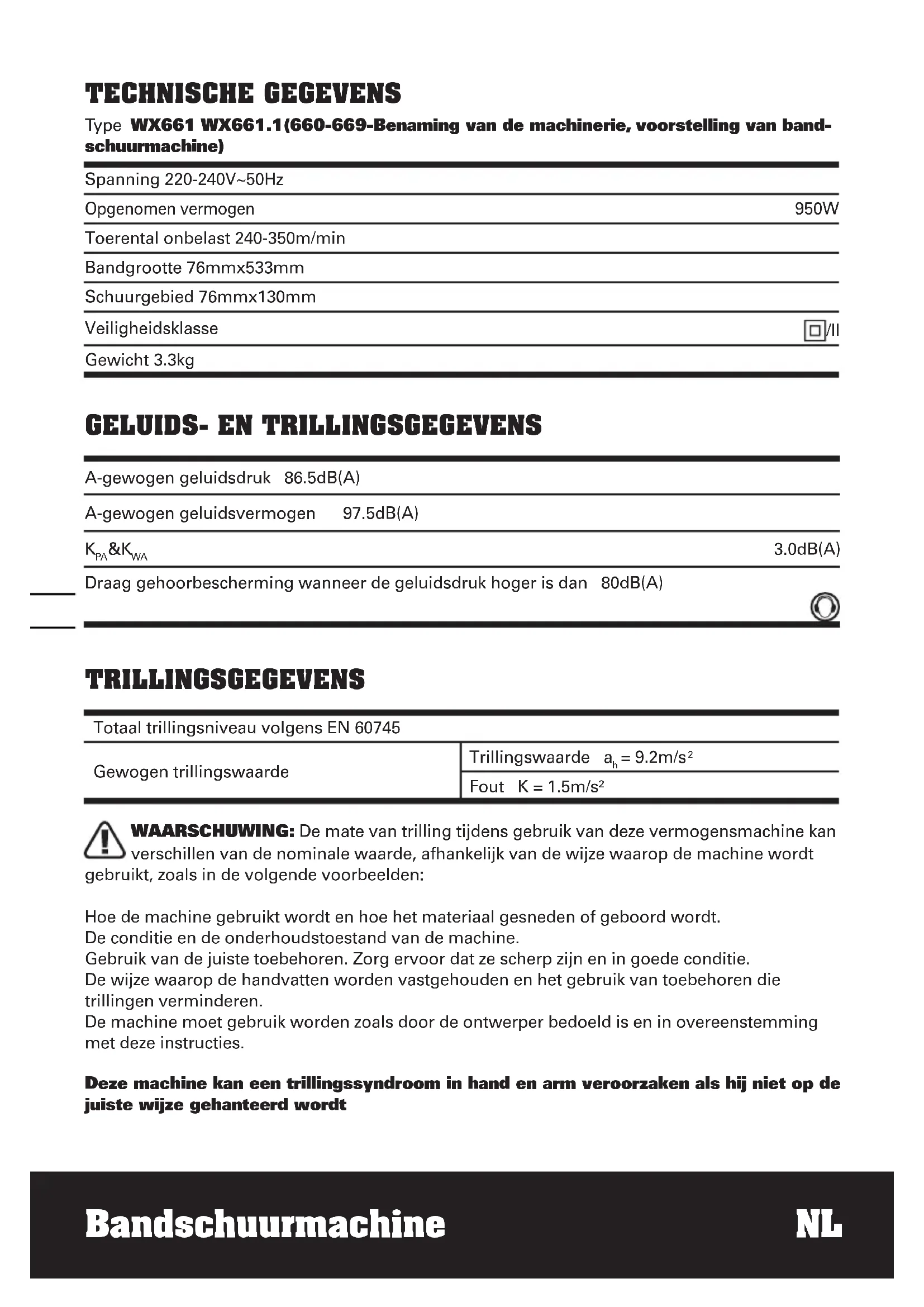 WAARSCHUWING: De mate van trilling tijdens gebruik van deze vermogensmachine kan