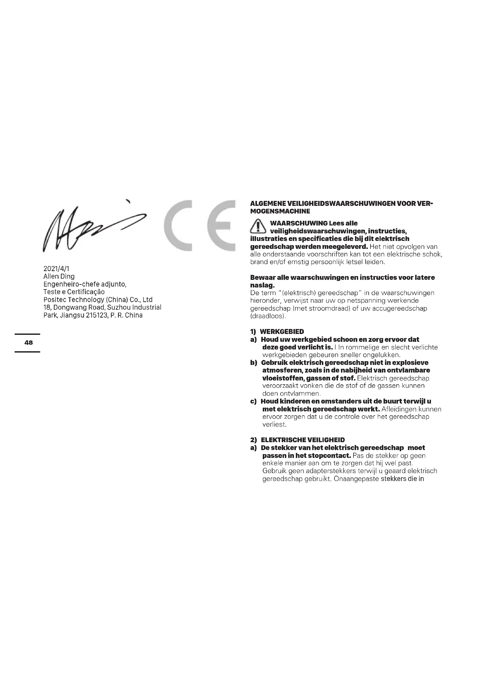 4) GEBRUIK EN ONDERHOUD VAN ELEKTRISCH GEREEDSCHAP