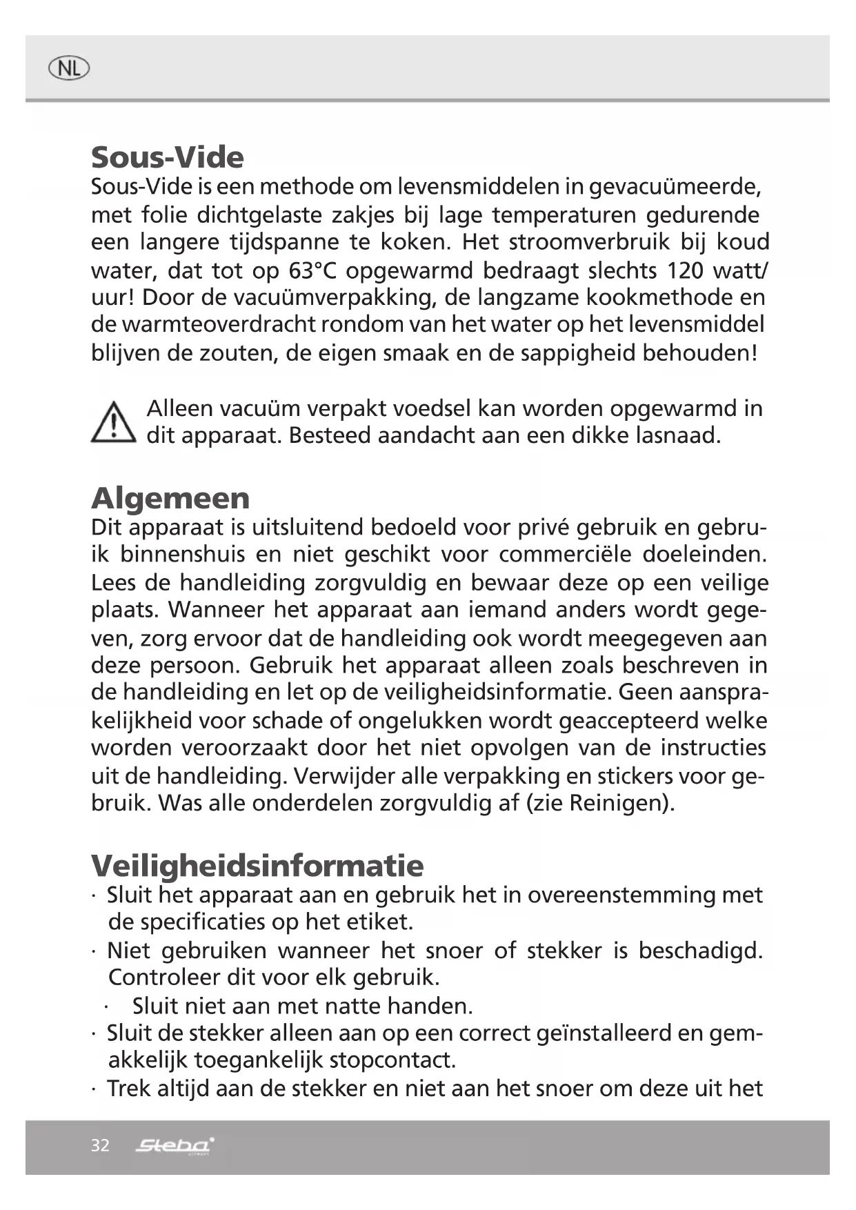 Dit apparaat is uitsluitend bedoeld voor privé gebruik en gebruik binnenshuis en Niet geschikt voor commerciele doeleinden. Lees de handleiding zorgvuldig en bewaar deze op een veiligeplaats. Wanner het apparaat aan iemand anders worden gegeven, zorg ervoor dat de handleiding ook worden meegegeven aan deze persoon. Gebruik het apparaat alleen zoals beschreiben in de handleiding en let op de veiligheidsinformatie. Geen aansprakelijkheid voor schade of ongelukken worden geaccepteerd welke worden veroorzaakt door het Niet opvolgen van de instructiesuit de handleiding. Verwijder alle verpakking en stickers voor gebruik. Was alle onderdelen zorgvuldig af (zie Reinigen).