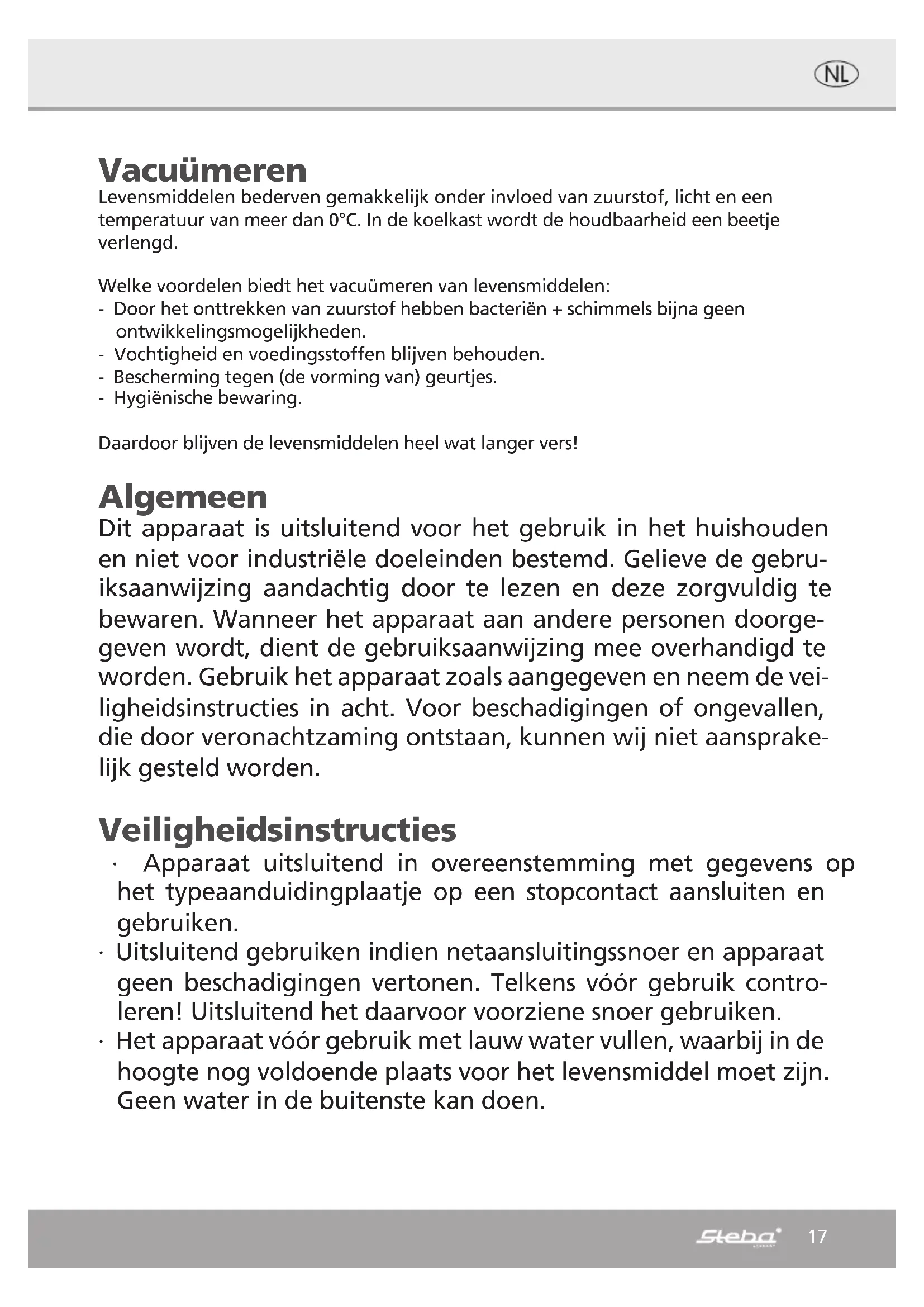 VK6 - Vacuümverpakkingsmachines STEBA - Gratis gebruiksaanwijzing en handleiding
