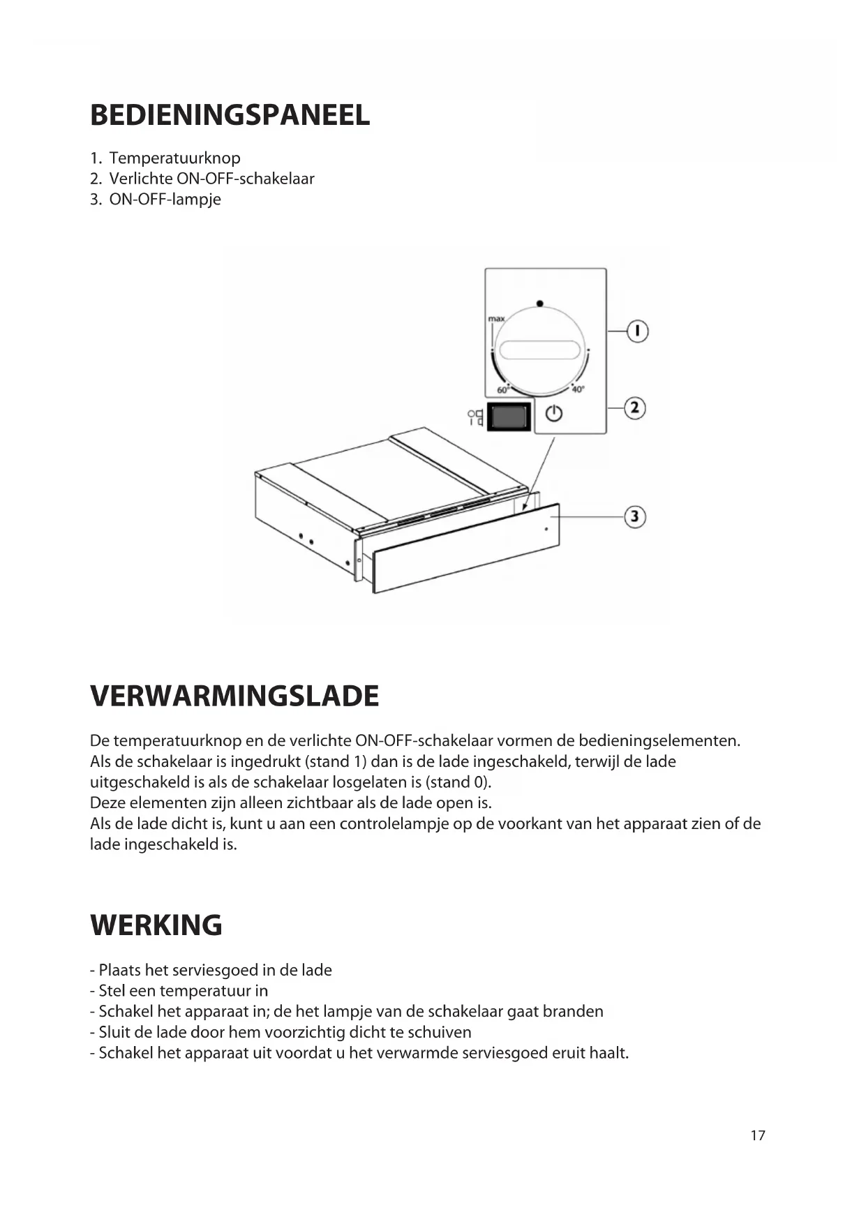 max 60° 40° ① ② ③VERWARMINGSLADE