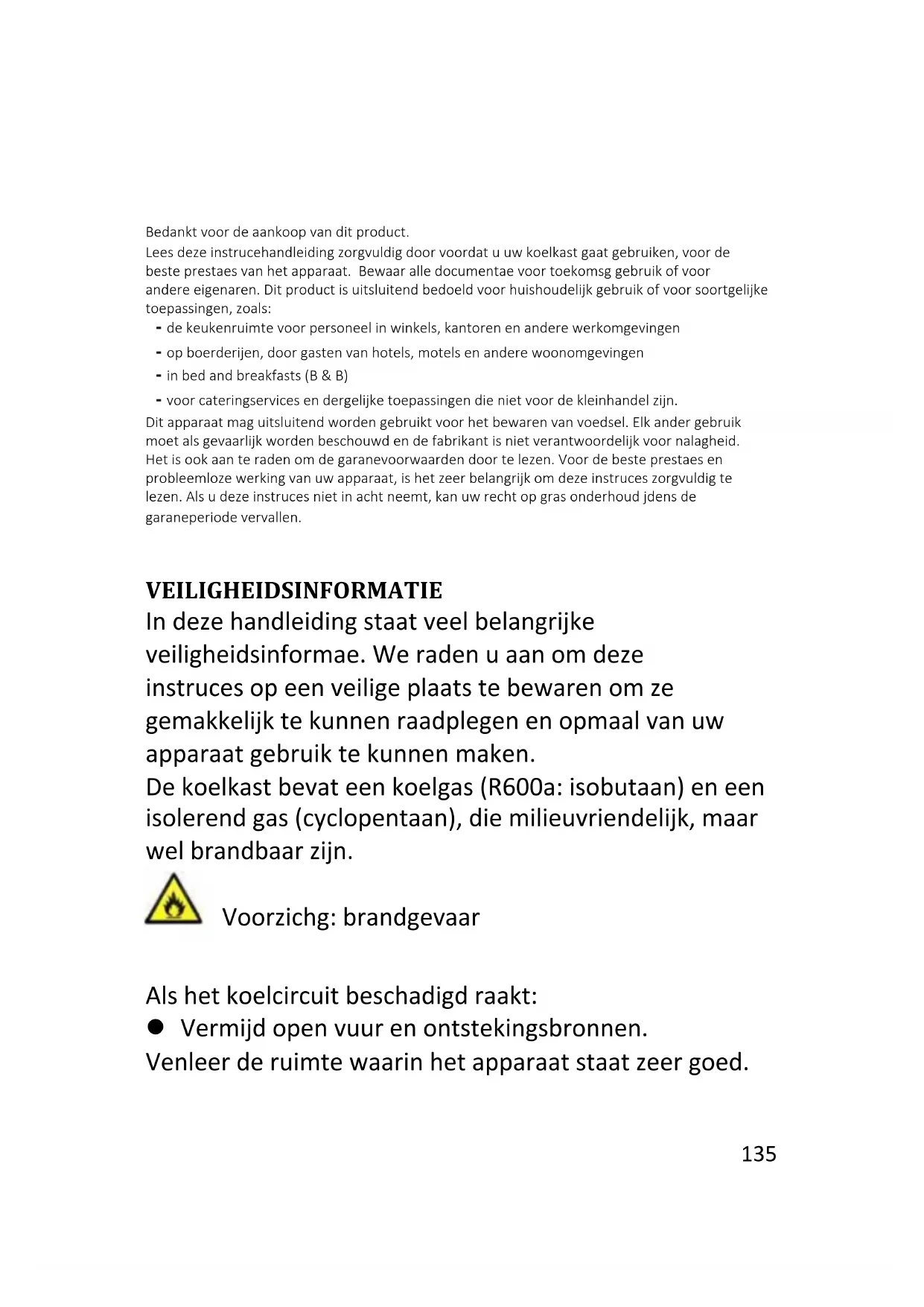 Dit apparaat mag uitsluitend worden gebruikt voor het bewaren van voedsel. Elk ander gebruik moet als gevaarlijk worden beschouwd en de fabrikant is niet verantwoordelijk voor nalagheid. Het is ook aan te raden om de garanevoorwaarden door te lezen. Voor de beste prestaes en probleemloze werking van uw apparaat, is het zeer belangrijk om deze instruces zorgvuldig te lezen. Als u deze instruces niet in acht neemt, kan uw recht op gras onderhoud jdens de garaneperiode vervallen.