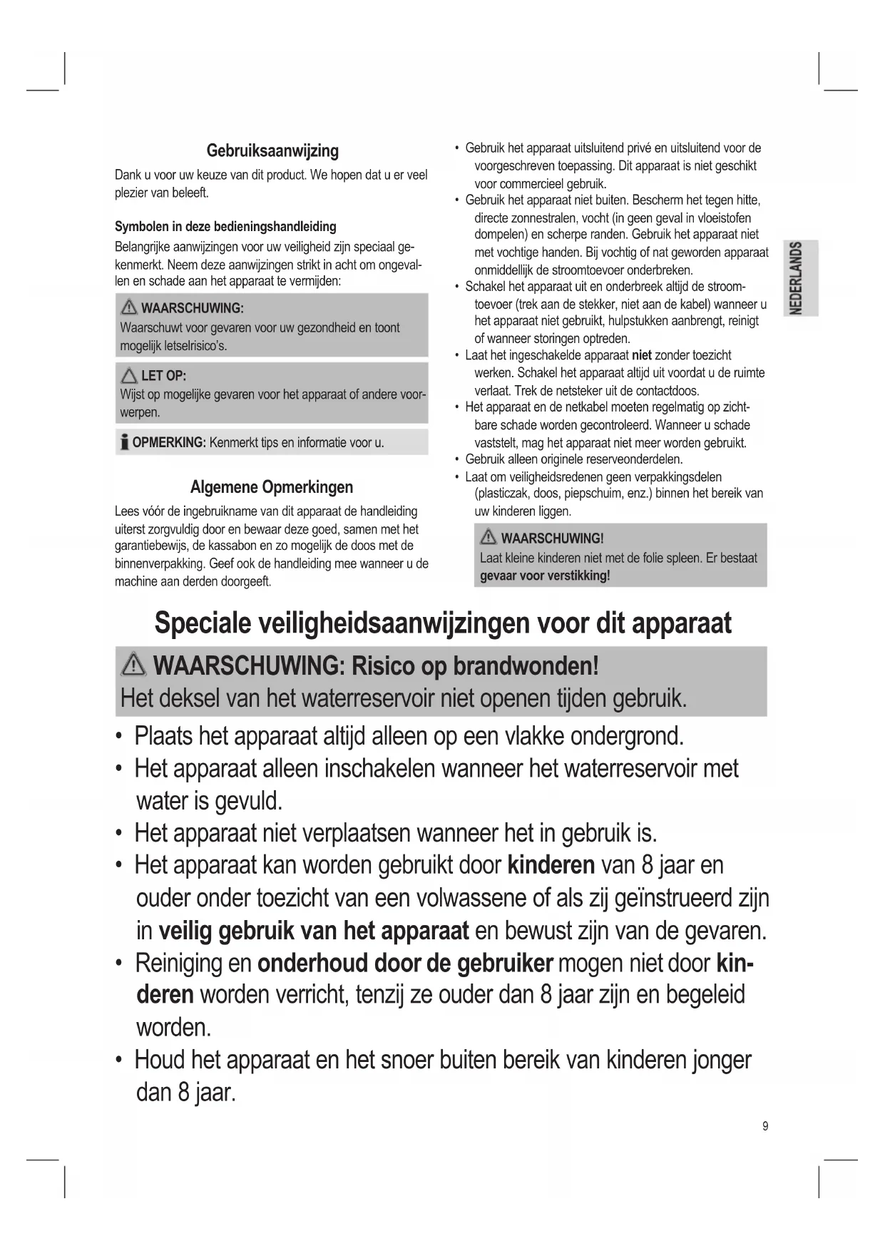 - Reiniging en onderhoud door de gebruiker mogen niet door kin- deren worden verricht, tenzij ze ouder dan 8 jaar zijn en begeleid worden.