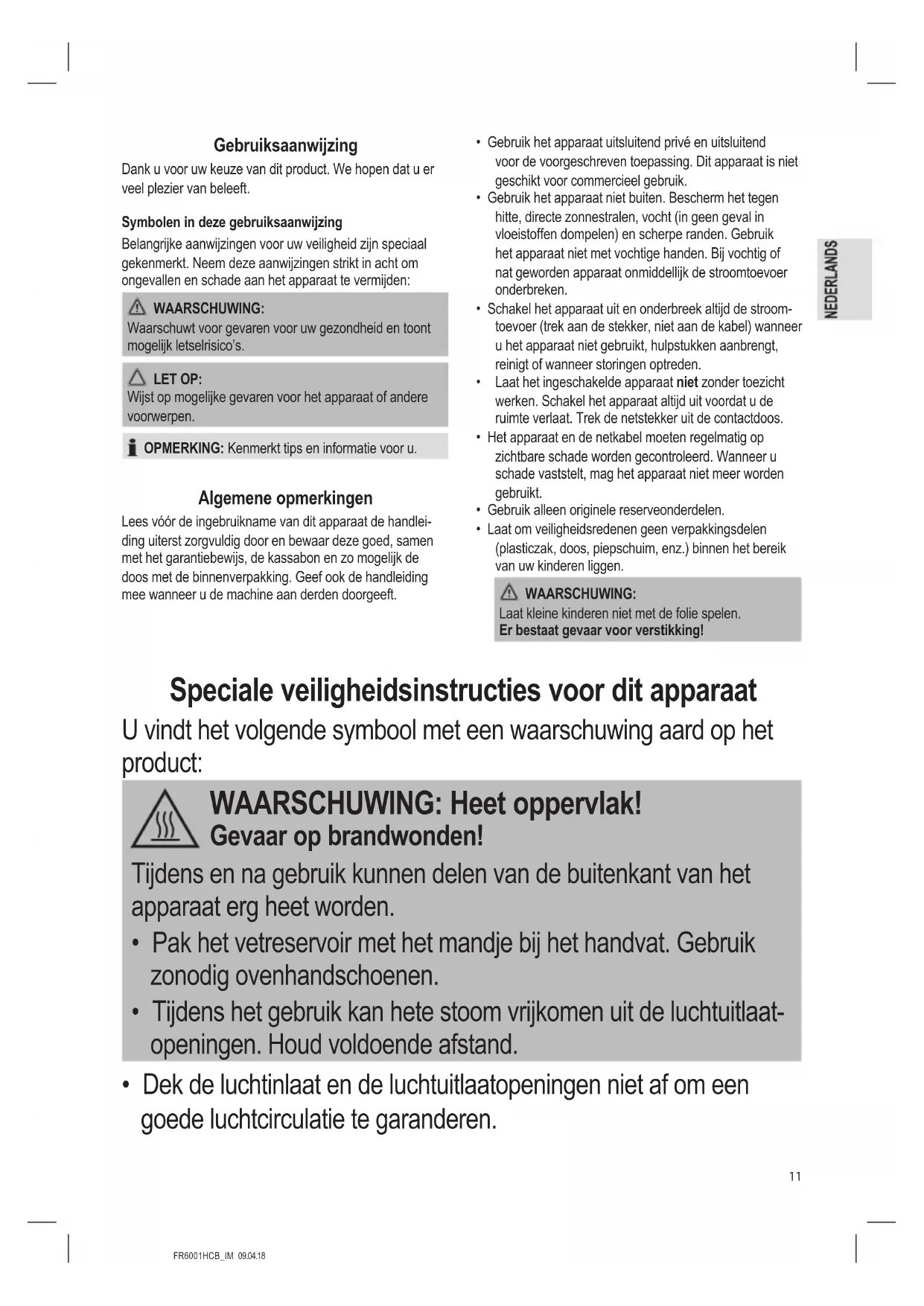 - Laat om veiligheidsredenen geen verpakkingsdelen (plasticzak, doos, piepschuim, enz.) binnen het bereik van uw kinderen liggen. WAARSCHUWING: Laat kleine kinderen niet met de folie spelen. Er bestaat gevaar voor verstikking! Speciale veiligheidsinstructies voor dit apparaat U vindt het volgende symbool met een waarschuwing aard op het product: WAARSCHUWING: Heet oppervlak! Gevaar op brandwonden! Tijdens en na gebruik kunnen delen van de buitenkant van het apparaat erg heet worden.