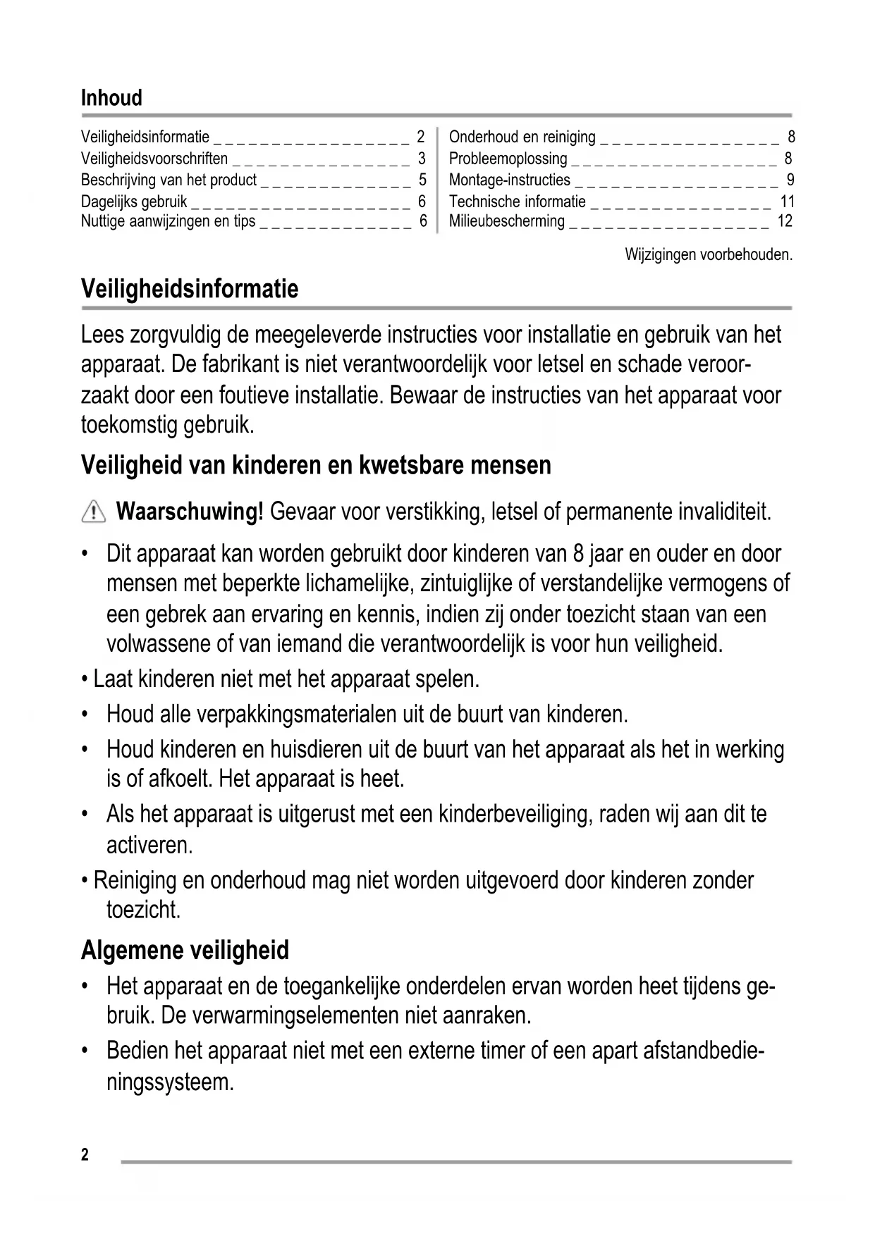 - Reiniging en onderhoud mag niet worden uitgevoerd door kinderen zonder toezicht. Algemene veiligheid