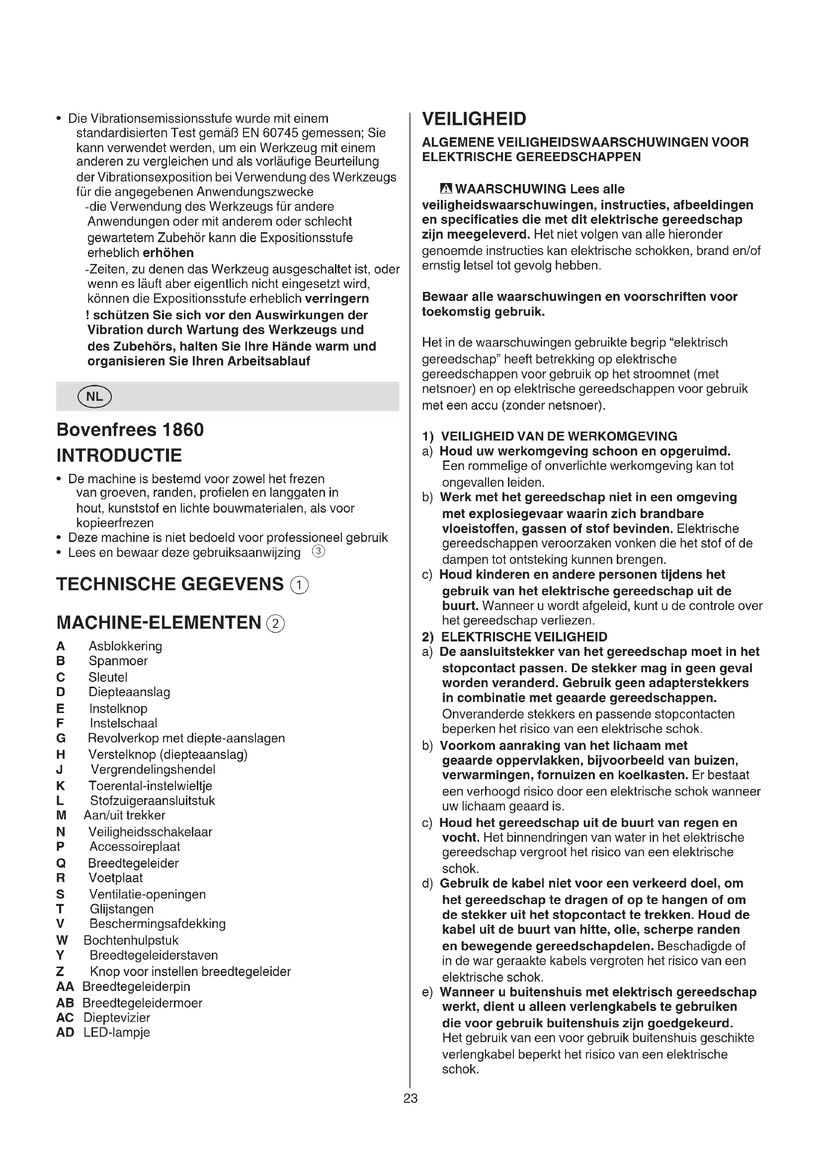 VEILIGHEIDSVOORSCHRIFTEN VOOR BOVENFREZEN