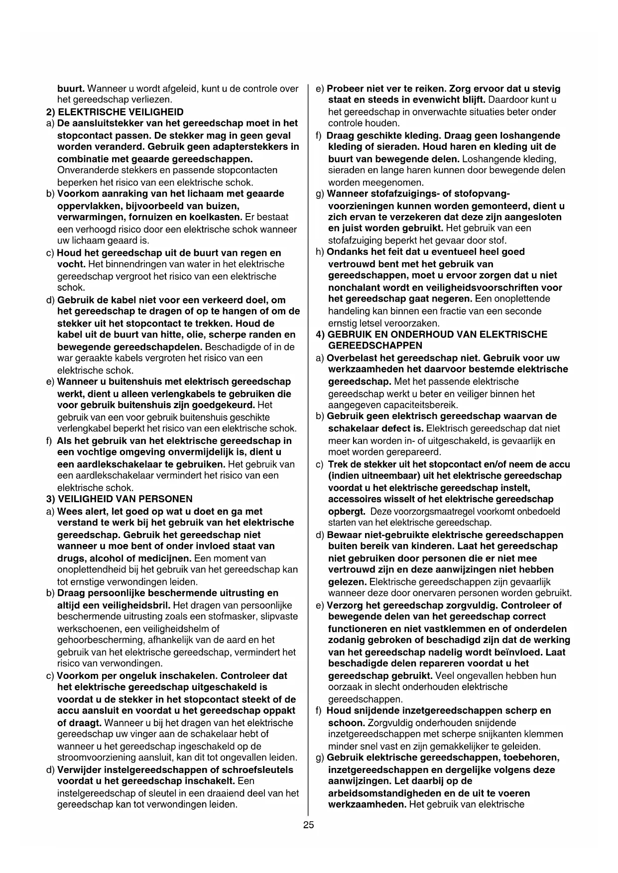 4) GEBRUIK EN ONDERHOUD VAN ELEKTRISCHE