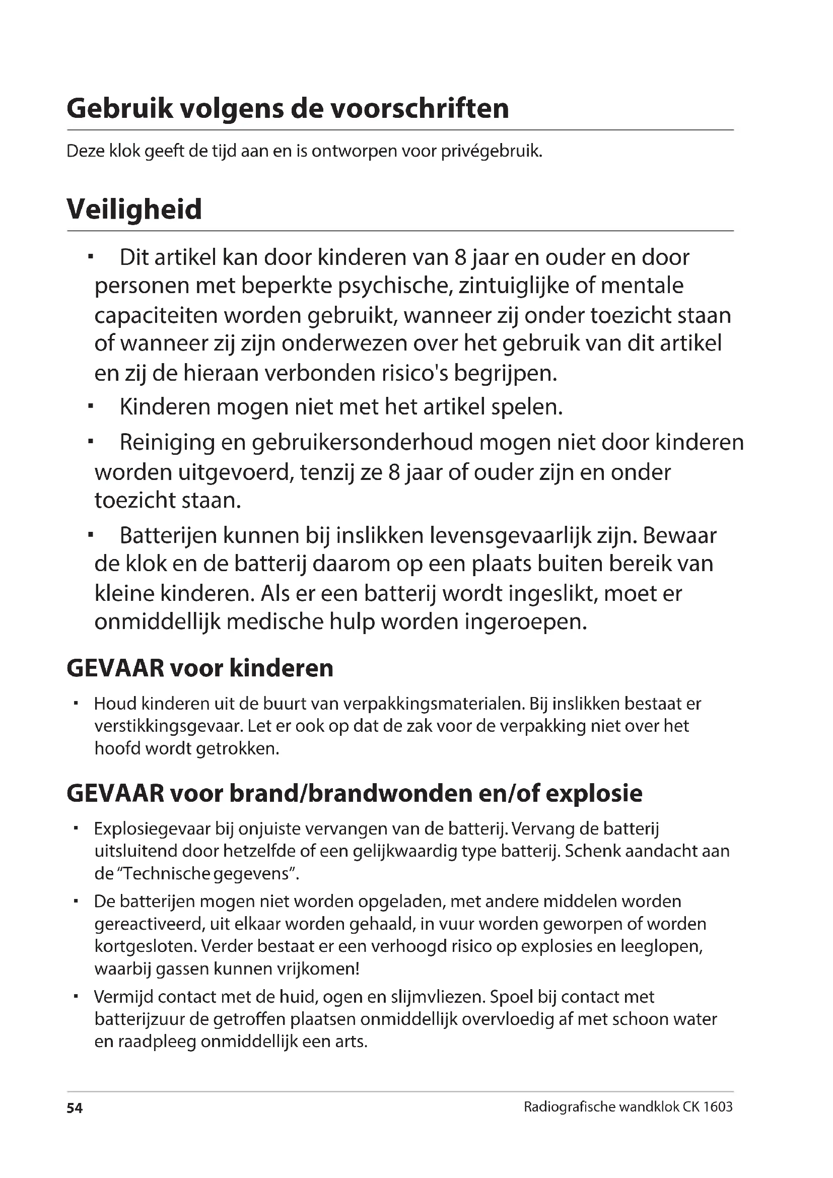 - Kinderen mogen nicht met het artikel spelen.
