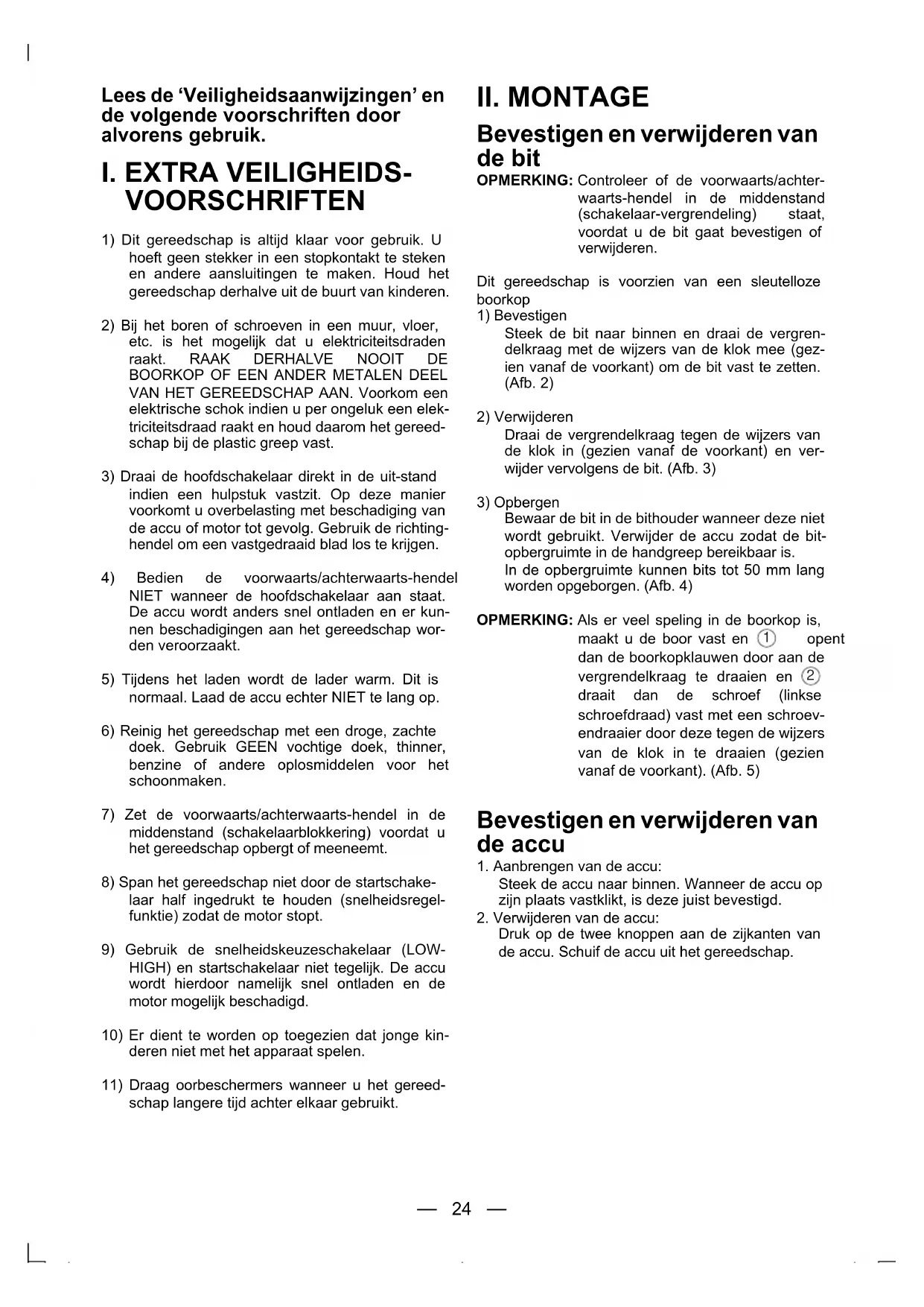 I. EXTRA VEILIGHEIDS-VOORSCHRIFTEN
