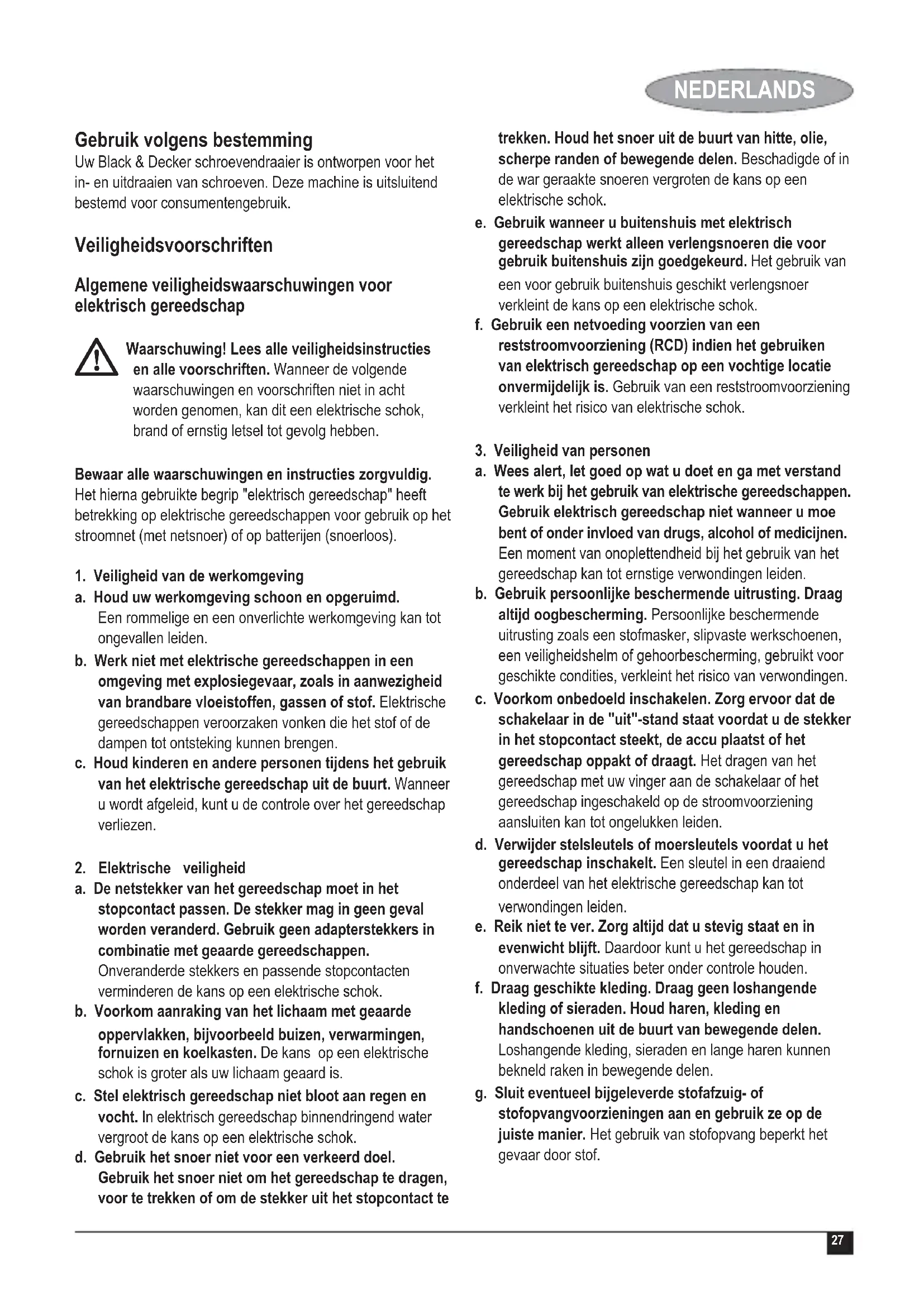 Uw Black & Decker schroevendraaier is ontworpen voor het in- en uittdraaien van schroeven. Deze machine is uitsluitend bestemd voor consumentengebruik.