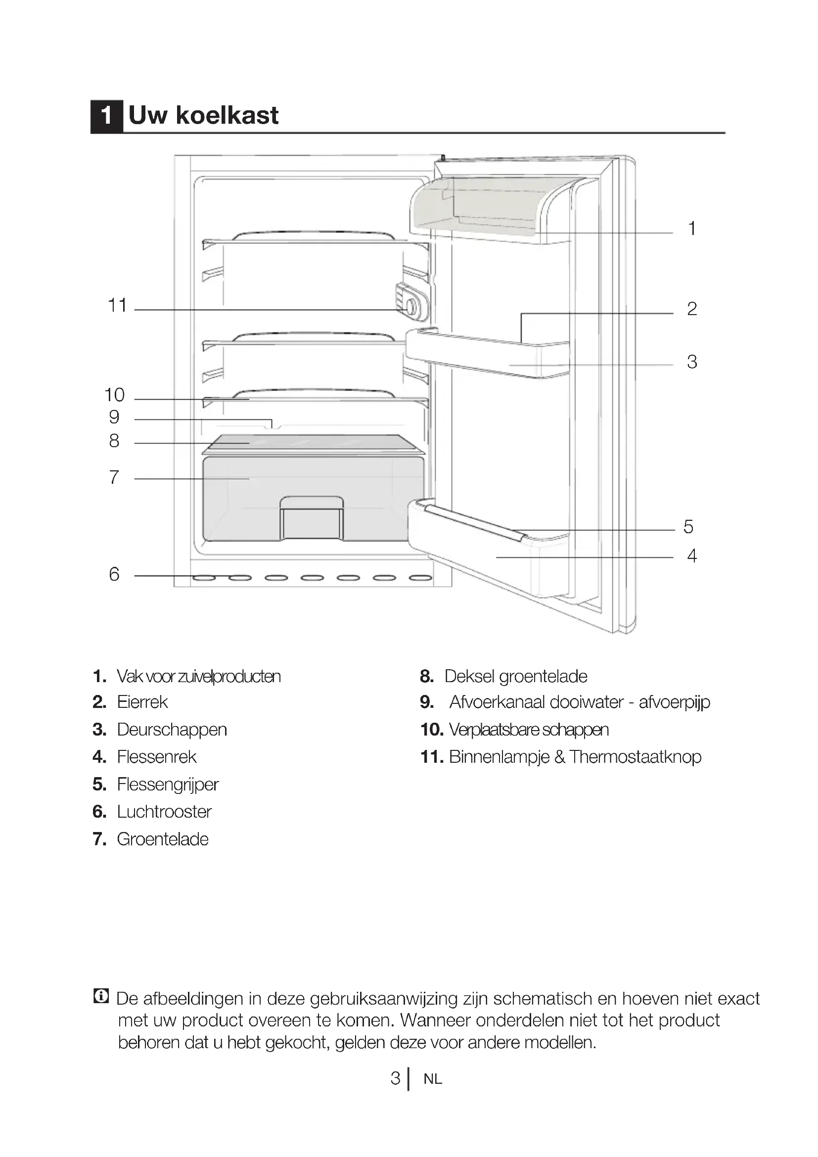 - Deze koelkast is enkel bestemd voor het bewaren van voedsel. Hij mag niet voor andere doeleinden worden gebruikt.