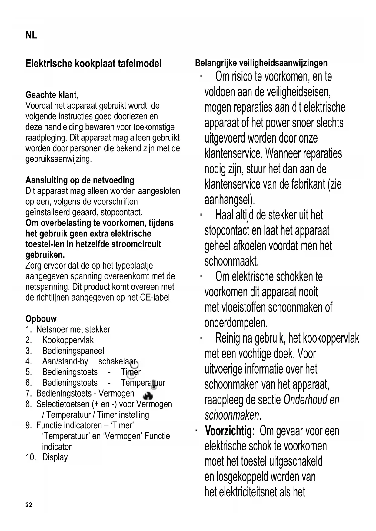 NL Gebruiksaanwijzing Elektrische kookplaat tafelmodel 22