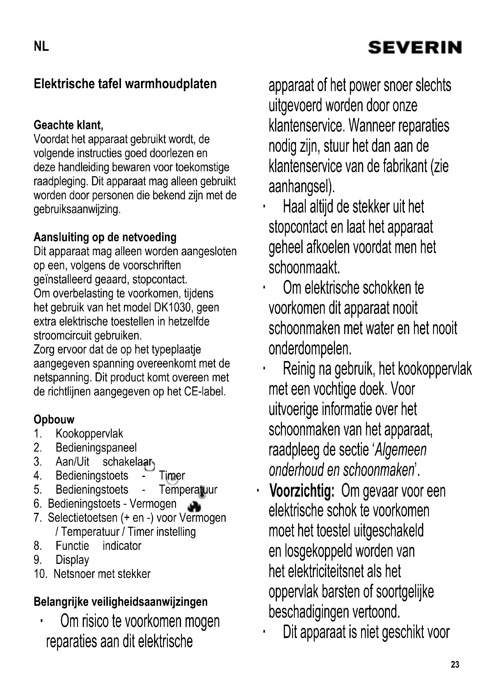 NL Gebruiksaanwijzing Elektrische tafel warmhoudplaten 23