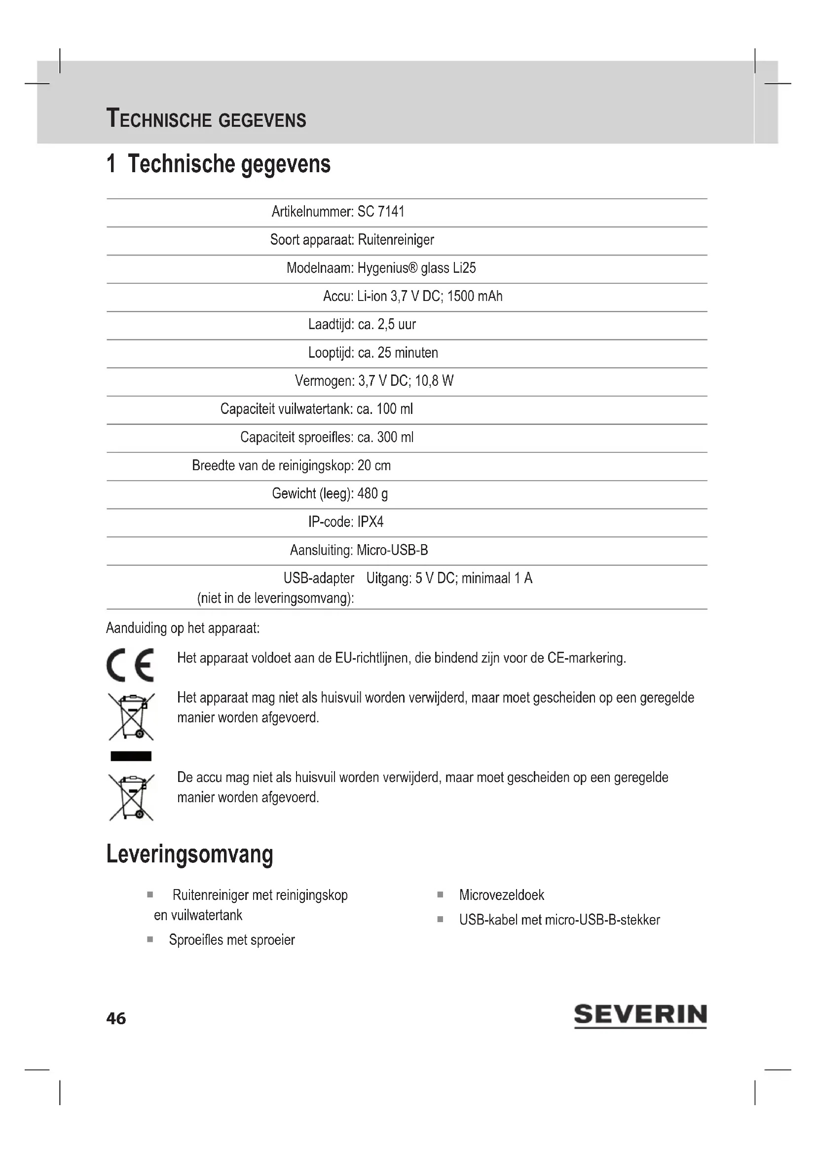 Deze handleding en de Quick Start Guide konnen indien nodig op internet op www.severin-floorcare.de Gratis worden gedownload.