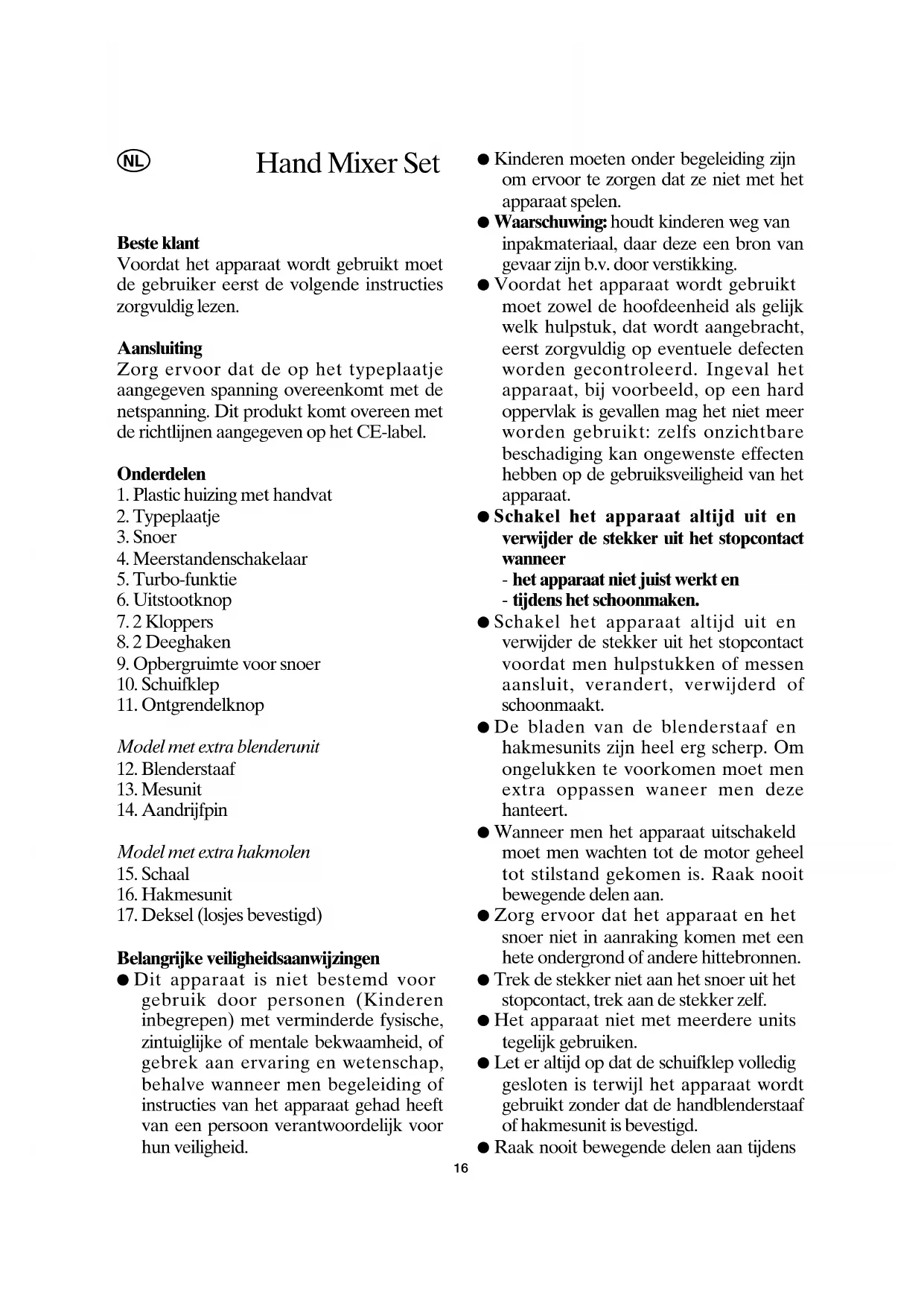 - Wonneer men klaar is met(AP) men wonneer men het(AP) men wil onderbreken schakel dan eerst het apparaat uit voordat men de hulpstukken uit de mengsel haalt.