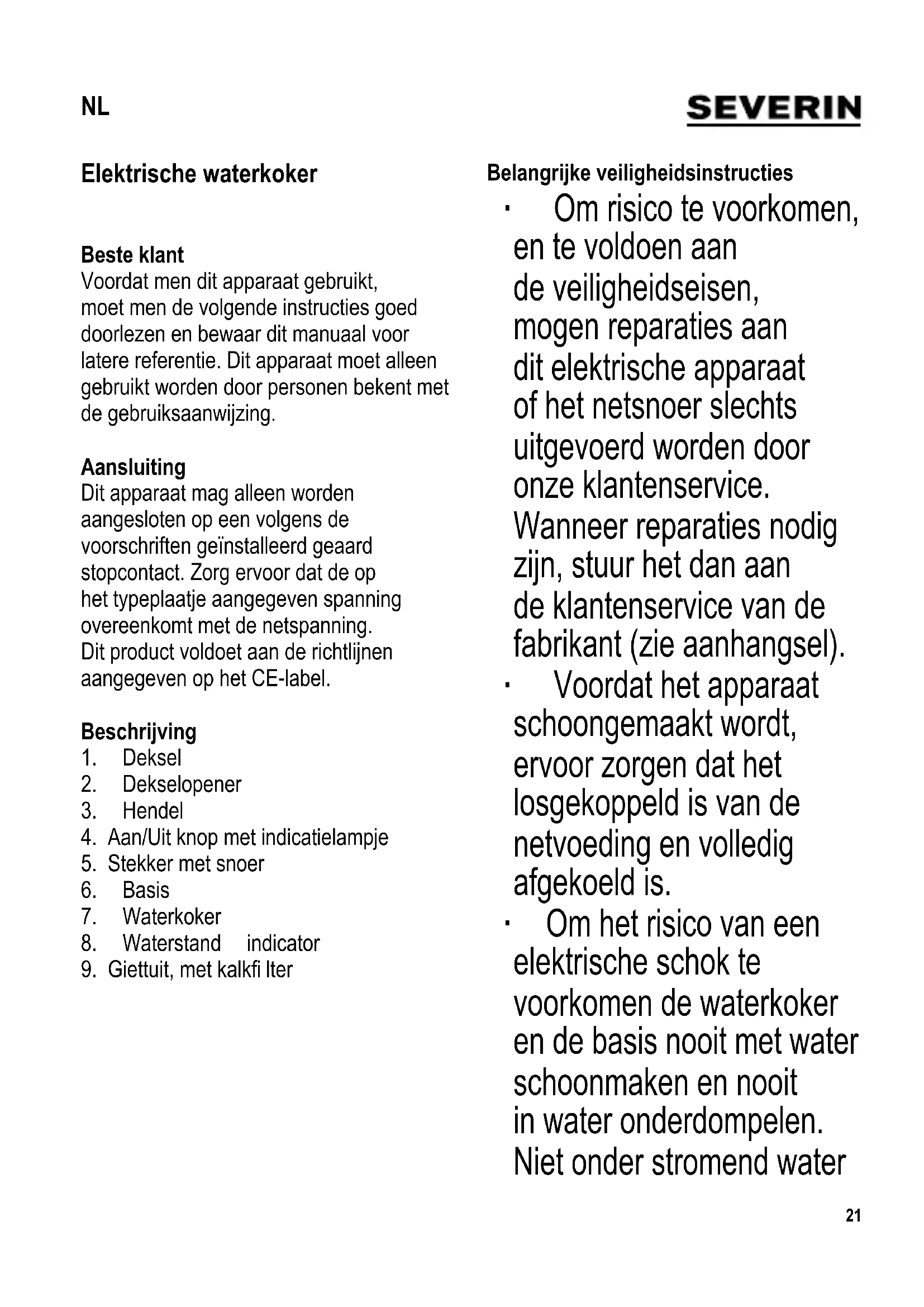 GEBRUIKSAANWIJZING WK 3417 SEVERIN