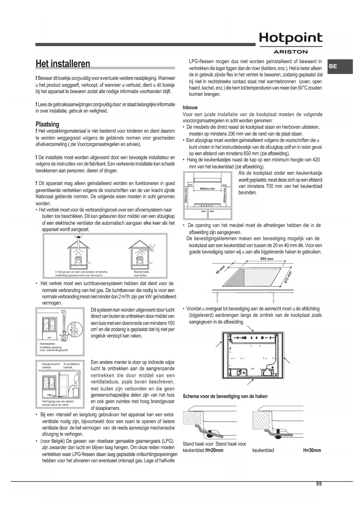 - Gasfornuizen hebben voor een goede werking behoefte aan een regelmatige luchtverversing. Controleer dat bij het installeren aan de vereisten wordt voldaan beschreven in de paragraaf “Plaatsing”.
