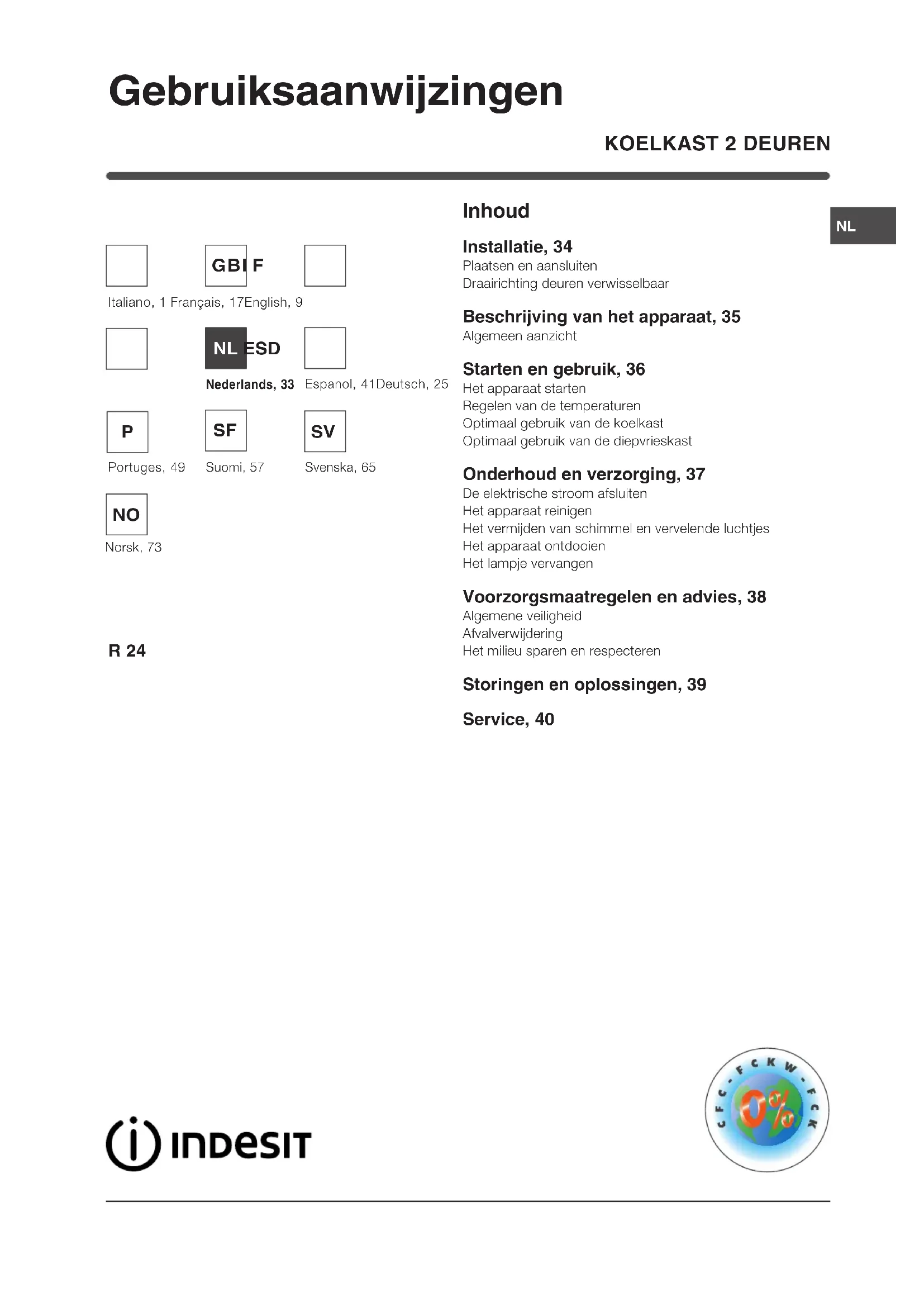 GEBRUIKSAANWIJZING R 24 (EU) (0) INDESIT