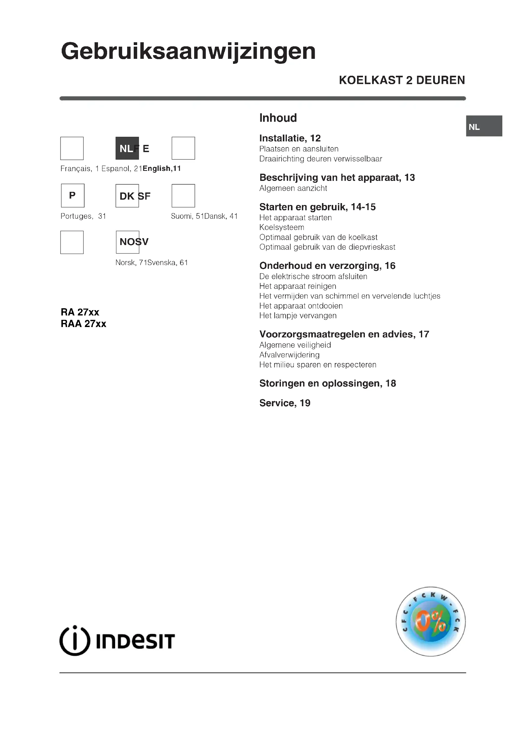 GEBRUIKSAANWIJZING RAA 27 IX (0) INDESIT