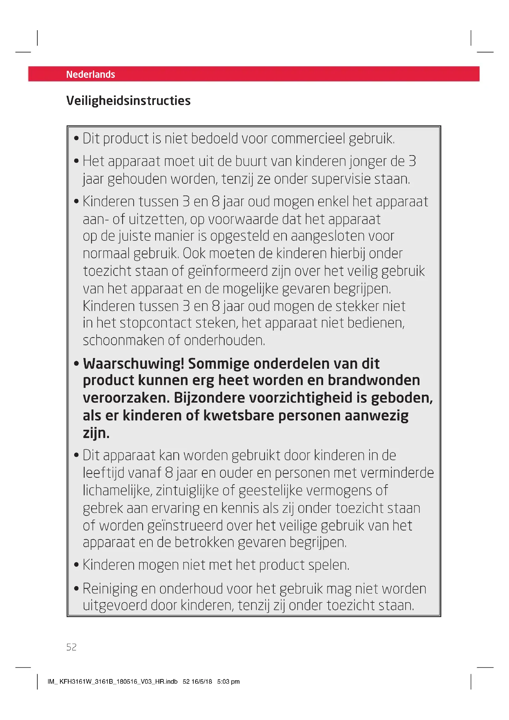 | Typeaanduiding(en) | KFH 3161W / KFH 3161B | ||||