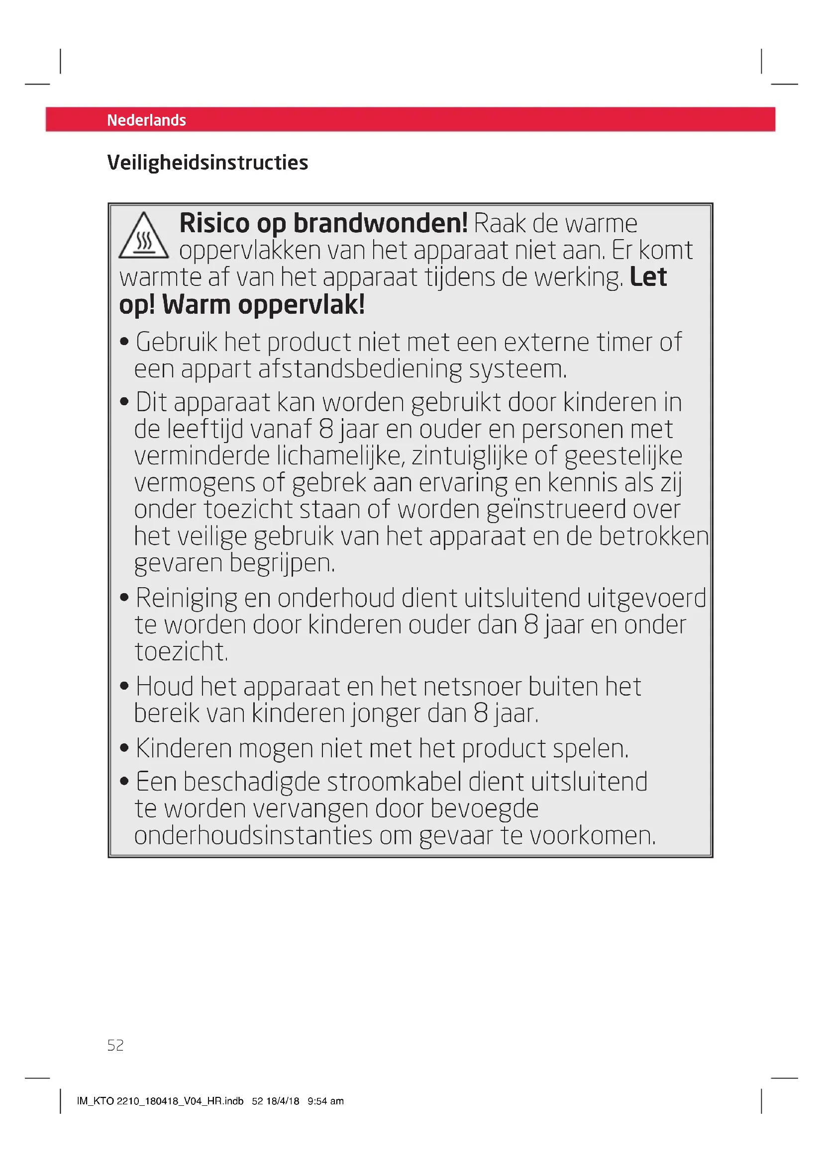 - Opgelet! Risico van brandgevaar wanneer ongeschikt brood voor het roosteren wordt gebruikt. Vanwege de kleinere afmeting of vorm bestaat er een risico voor het raken van hete delen bij het uitnemen van het geroosterde brood.