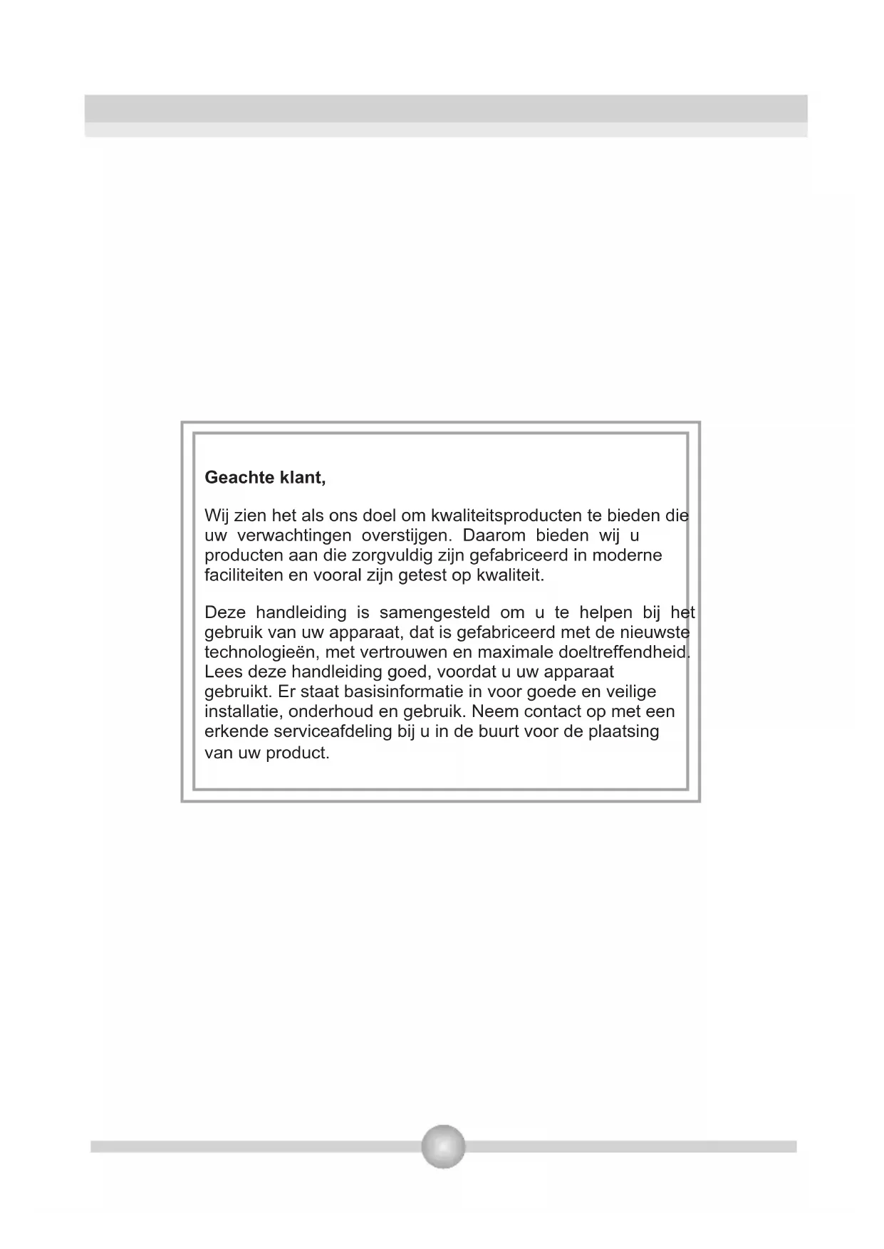 Deze handleiding is samengesteld om u te helpen bij het gebruik van uw apparaat, dat is gefabriciceerd met de niewste technologieën, met vertrouwen en maximale doeltreffendheid. Lees deze handleiding goed, voordat u uw apparaat gebruikt. Er staat basisinformatie in voor goede en veilige installmentie, onderhoud en gebruik. Neem contact op met een erkende serviceafdeling bij u in de buurt voor deplaatsing van uw product.