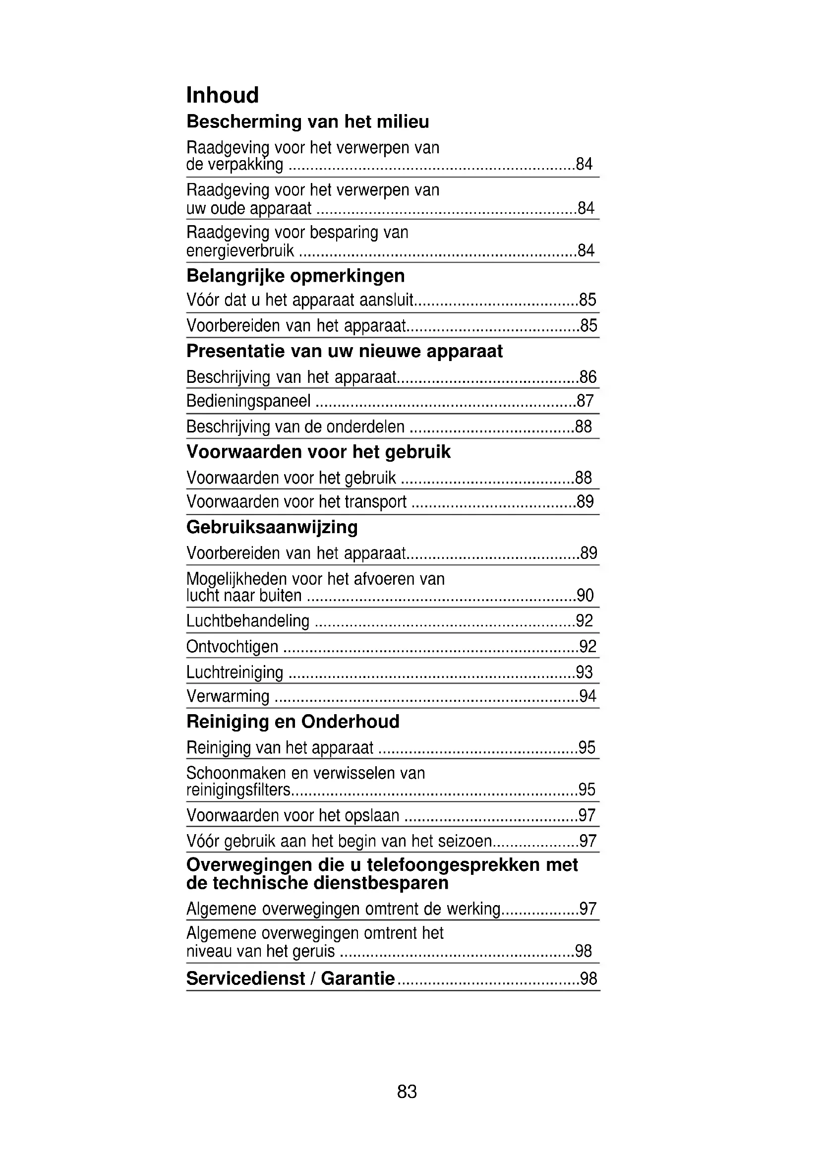 - Overwegingen die u telefoongesprekken met de technische dienstbesparen Algemene overwegingen omtrent de werking p. 97
