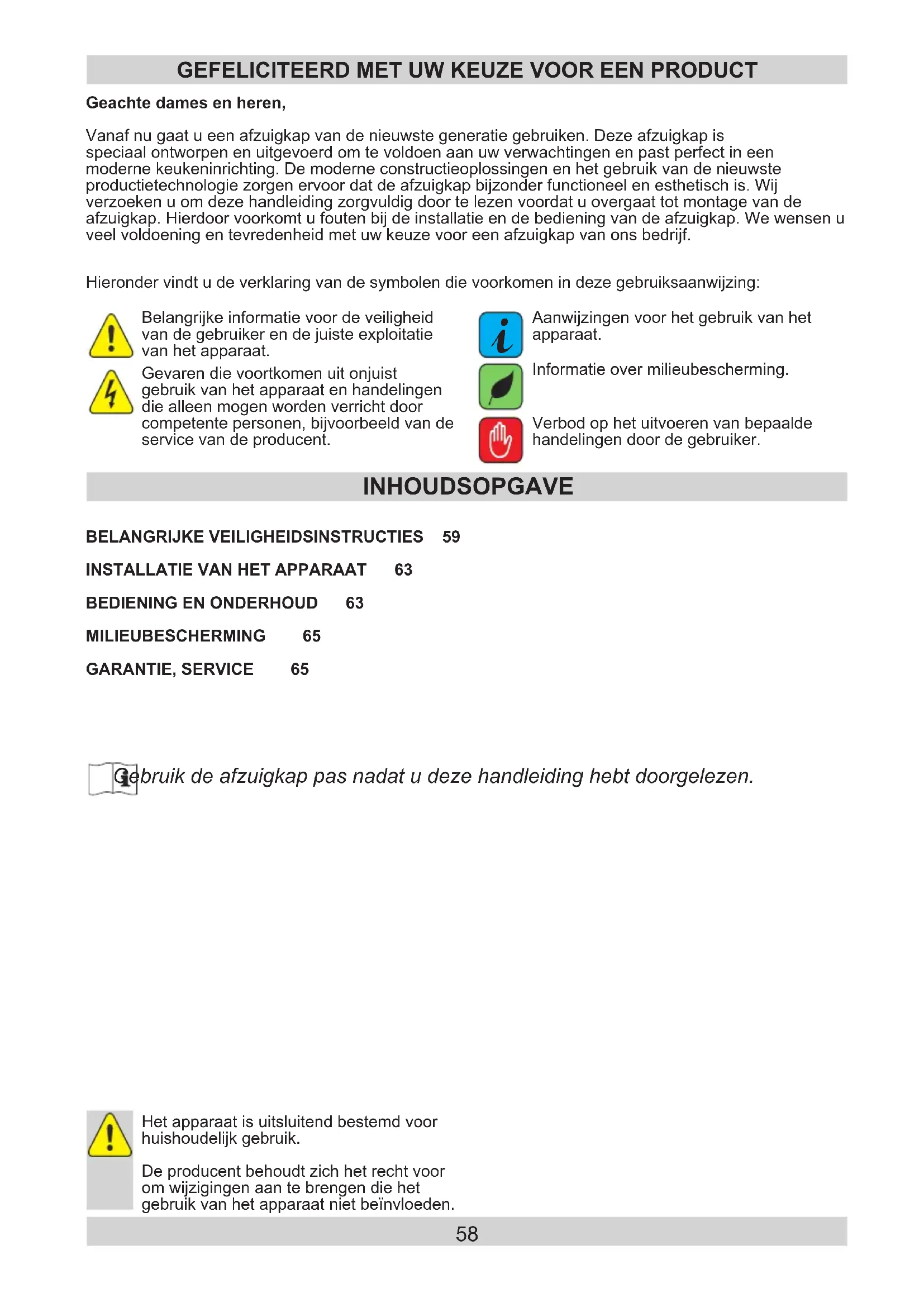 bruik de afzuigkap pas nadat u deze handleiding hebt doorgelezen.