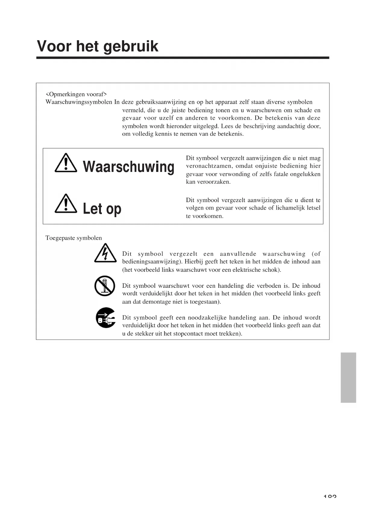 Voor het gebruik■ Als er iets ernstig mis is: