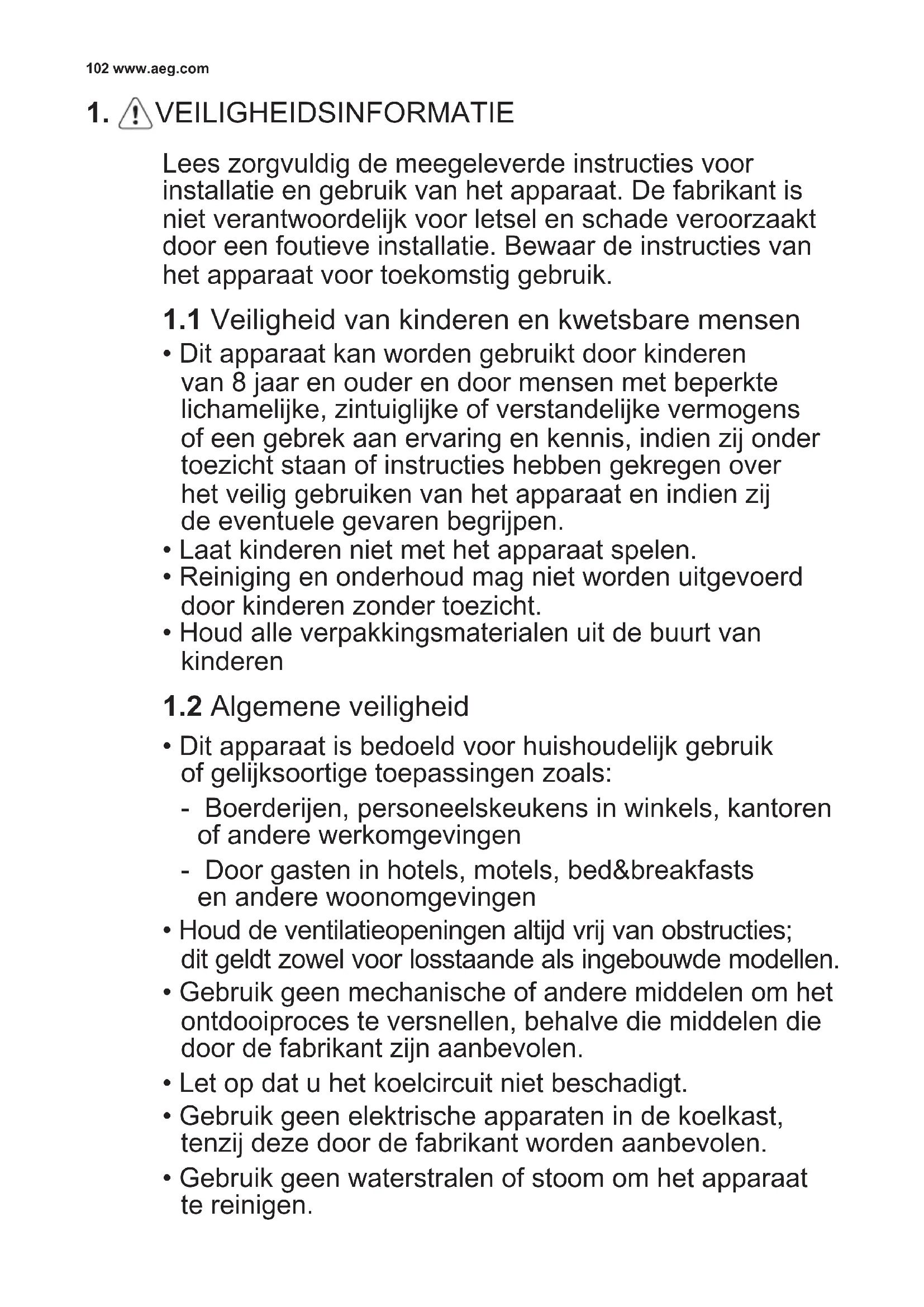 Lees zorgvuldig de meegeleverde instructies voor installatie en gebruik van het apparaat. De fabrikant is niet verantwoordelijk voor letsel en schade veroorzaakt door een foutieve installatie. Bewaar de instructies van het apparaat voor toekomstig gebruik. 1.1Veiligheid van kinderen en kwetsbare mensen