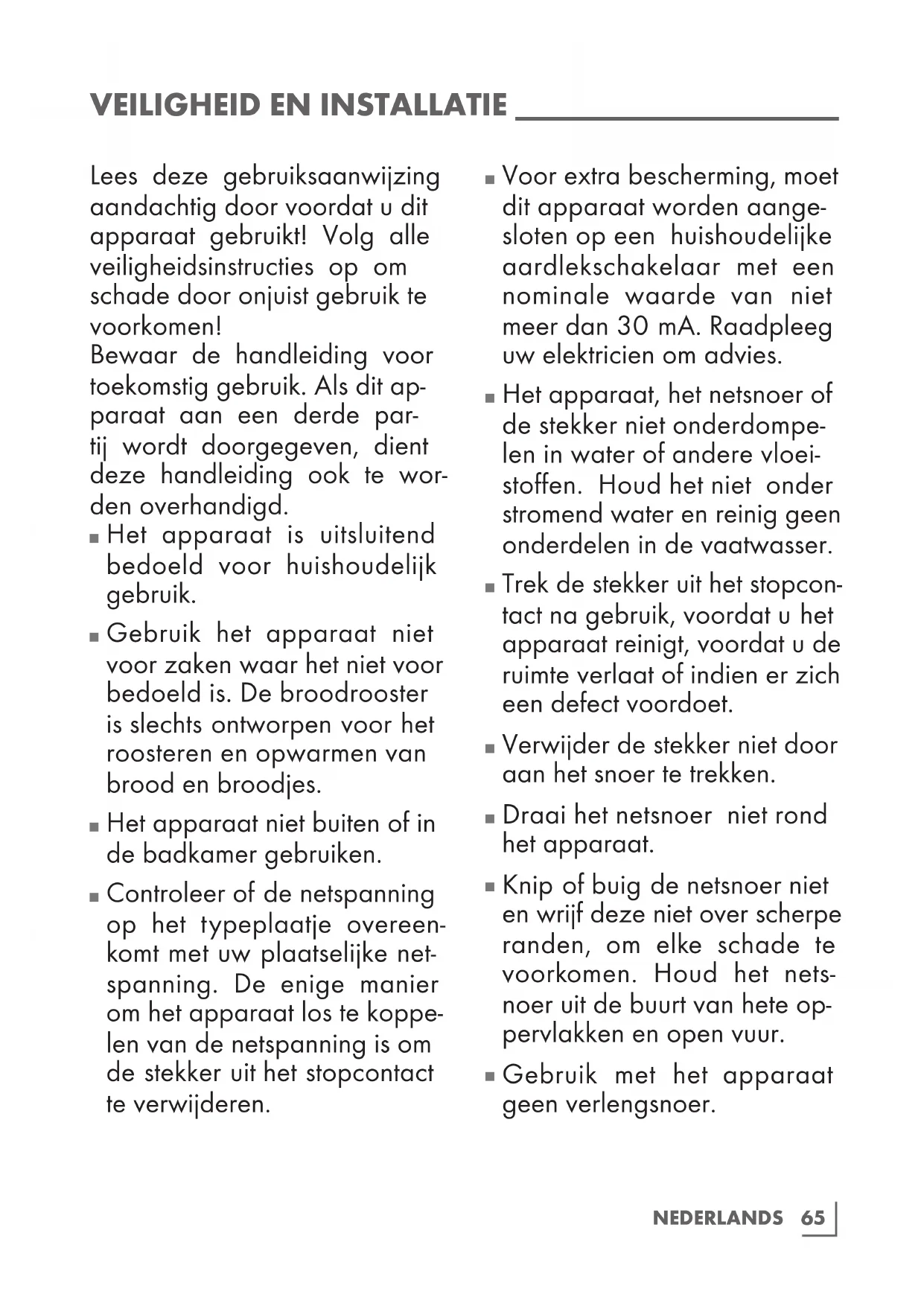 Gebruik het apparaat niet voor zaken waar het niet voor bedoeld is. De broodrooster is slechts ontworpen voor het roosteren en opwarmen van brood en broodjes.